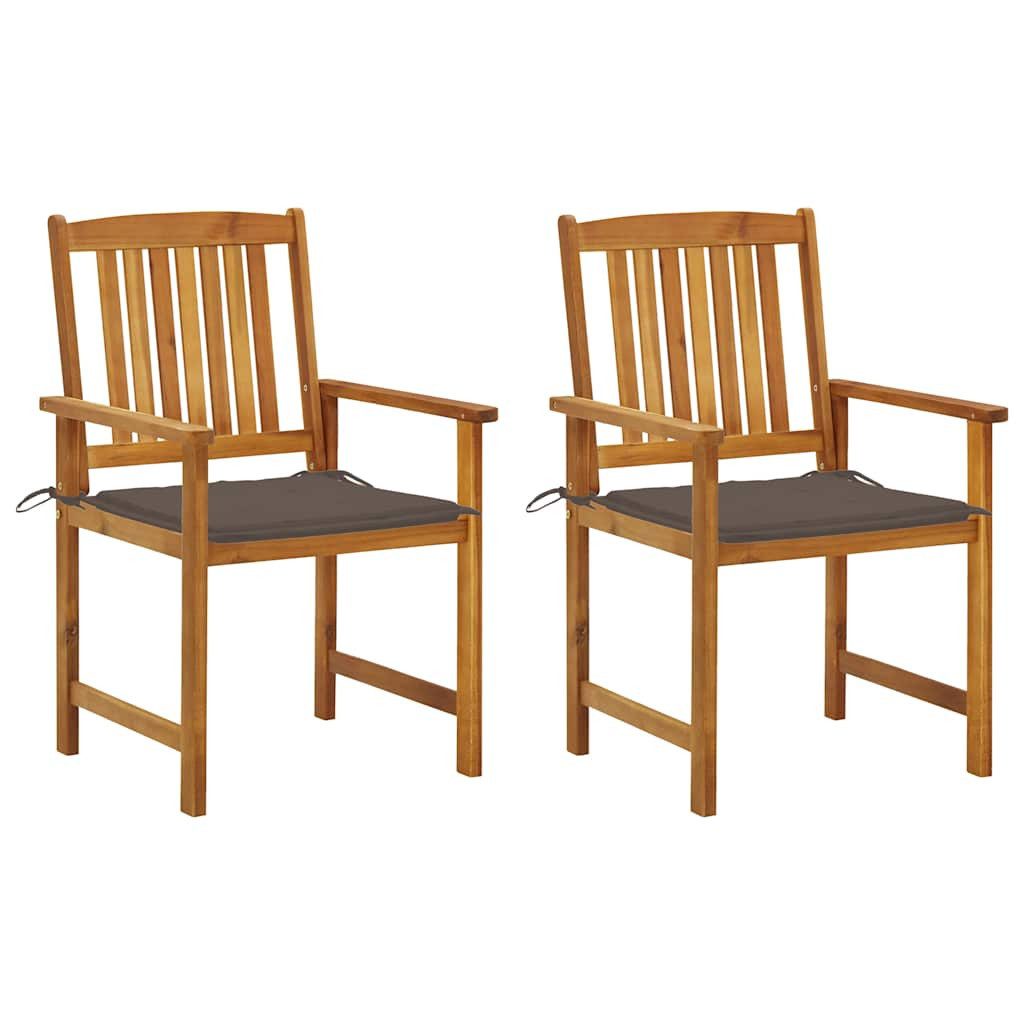 Diese Gartenstühle bestehen aus massivem nholz und sind daher robust und stabil. Die Kissen sorgen für zusätzlichen Komfort. Jedes Sitzkissen verfügt über zwei Schnüre, um es fest am Gartenstuhl zu befestigen.
