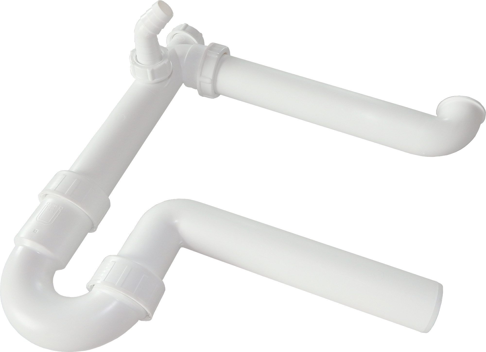 Der VIEGA Raumspar-Siphon ist die perfekte Wahl für eine saubere und effiziente Entwässerung in Ihrer Küche. Mit seinem 90° Ablaufbogen und zwei Geräteanschlüssen eignet er sich ideal für die Integration von Geschirrspülern und anderen Geräten. Der Siphon ist aus hochwertigem, weißem Kunststoff gefertigt und passt zu allen handelsüblichen Küchenspülen. Der waagerechte Abgang sorgt für eine platzsparende Montage, während das flexible Design mit kürzbarem Tauch- und Abwasserrohr die Installation vereinfacht.