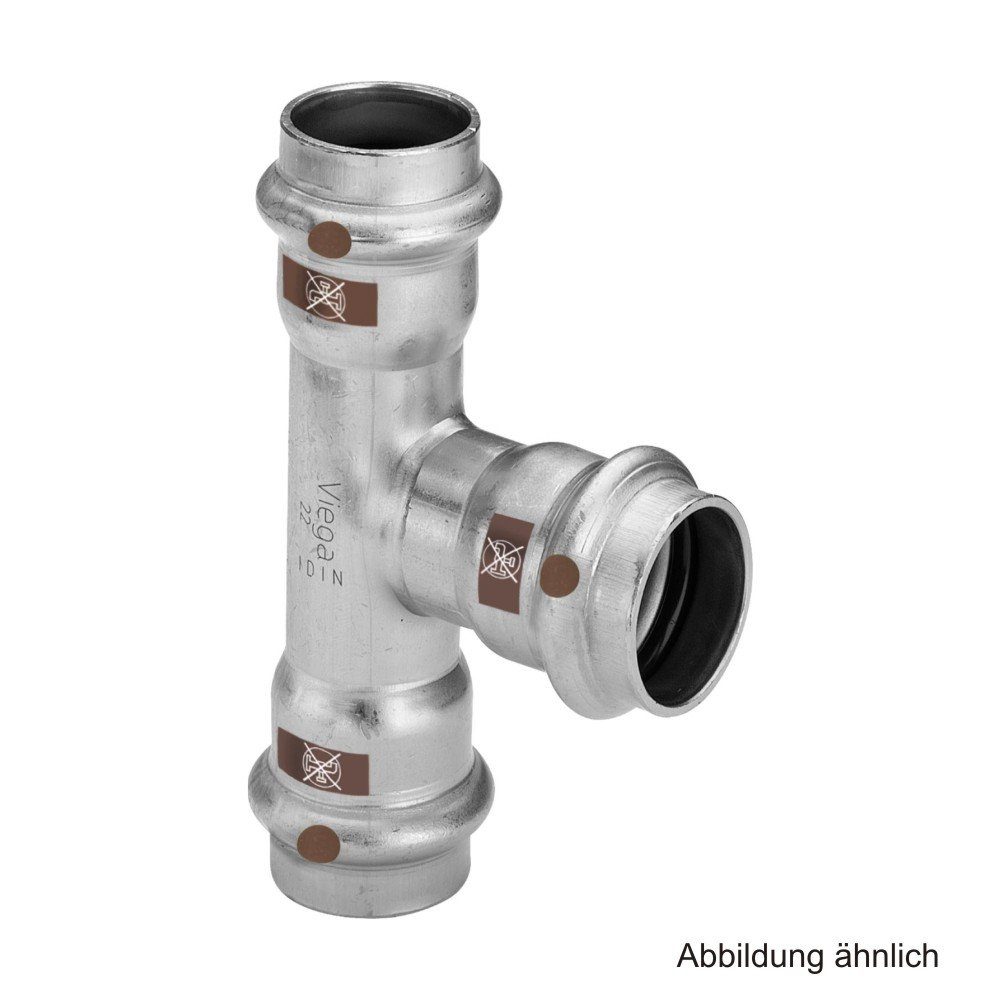 Eigenschaften: Strömungsoptimiertes Pressverbindersystem aus Edelstahl 1.4301 und Rohren aus Edelstahl 1.4520. Pressverbinder ab d76,1 mit Edelstahlschneidring zur Sicherstellung der mechanischen Belastbarkeit der Verbindung. Die Presskraft liegt vor und hinter dem Dichtelementesitz an. Geeignet für Auf- und Unterputz-Installationen von Steigleitungen und Etagen-Installationen. Normen und Zulassungen: Pressverbindersystem nach DIN EN 10088‑2 und DIN EN 10312. Bei Einsatz in Heizungsanlagen VDI-Richtlinie 2035 und DIN EN 12828 beachten. Betriebsbedingungen mit EPDM-Dichtelement: Das Pressverbindersystem Temponox ist bei nachfolgenden Betriebsparametern einsetzbar: Heizungsanlagen nach DIN EN 12828 Betriebstemperatur max. 105 °C / 221 °F Pressverbinder mit SC‑Contur: Versehentlich nicht verpresste Verbindungen werden beim Befüllen der Anlage sichtbar undicht. Viega gewährleistet das Erkennen unverpresster Verbindungen in den folgenden Druckbereichen: min. Wasserdruck: 0,1 MPa / 100 kPa / 1 bar / 14,5 PSI max. Wasserdruck: 0,65 MPa / 650 kPa / 6,5 bar / 94,3 PSI min. Luftdruck: 22 hPa / 2,2 kPa / 22 mbar / 0,3 PSI max. Luftdruck: 0,3 MPa / 300 kPa / 3 bar / 43,5 PSI Werkstoffe: Verbinder: Edelstahl 1.4301 Rohre: Edelstahl 1.4520 Dichtelemente: EPDM (Ethylen-Propylen-Dien-Kautschuk), schwarz, vormontiert Kennzeichnung: brauner Punkt auf Pressende Symbol »Nicht für Trinkwasser-Installationen zugelassen«, braune Linie auf den Rohren, brauner Aufkleber abziehbar als Verpressindikator ab d76,1 Einsatzbereiche: Geschlossene Kühl- und Heizungsanlagen Druckluftanlagen Solaranlagen mit Flachkollektoren Solaranlagen mit Vakuumkollektoren (nur mit FKM-Dichtelement) Industrieanwendungen NICHT FÜR TRINKWASSER GEEIGNET! VG810337