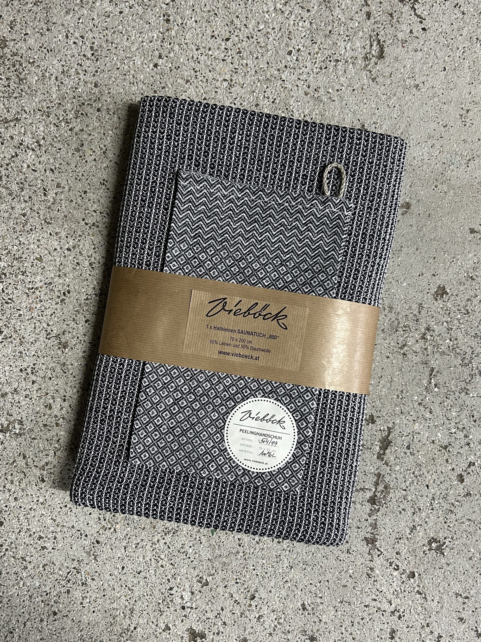 Erleben Sie Nachhaltigkeit und Wohlbefinden mit unseren regionalen Halbleinen-Waffeltüchern – das ideale Geschenk für alle Wellnessliebhaber. Ob beim Sauna- oder Thermenbesuch oder einfach für ein luxuriöses Spa-Erlebnis zu Hause: Diese Tücher bringen das ultimative Wohlgefühl direkt in Ihr Heim. Die Waffelbindung bietet einen wohltuenden Peeling-Effekt, der Ihre Haut sanft pflegt und vitalisiert. Mit jeder Anwendung genießen Sie ein Gefühl von Reinheit und Frische. Unser Saunatuch 800 in den eleganten Farben Schwarz (99) und Sand (00) wird inklusive eines passenden Peelinghandschuhs “504” geliefert, um Ihr Wellnesserlebnis abzurunden. Hinweis: Resteinsprung von max. 8% möglich. Vor dem ersten Gebrauch bitte 2-3 Mal waschen. Material Saunatuch: 50% Leinen, 50% Baumwolle MaterialPeling-Handschuh: 100 % Leinen Vorteile im Überblick: Nachhaltiges und regionales Produkt Saugfähig und schnelltrocknend Angenehmer Peeling-Effekt durch festes Leinengewebe