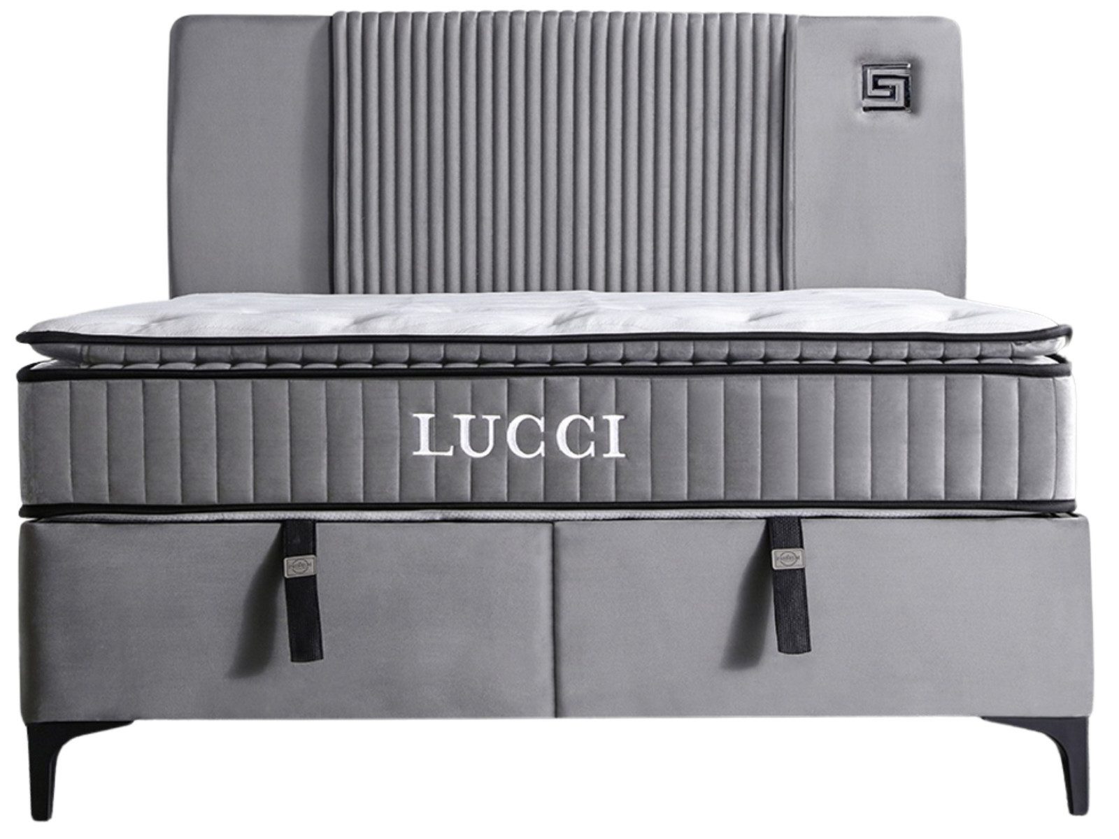 Das Lucci Grau Bett-Set überzeugt durch sein modernes Design und das aufwendig gesteppte Kopfteil, das dem Schlafzimmer einen Hauch von Luxus verleiht. Die gepolsterte Lehne bietet hohen Komfort und setzt zugleich einen eleganten Akzent.
