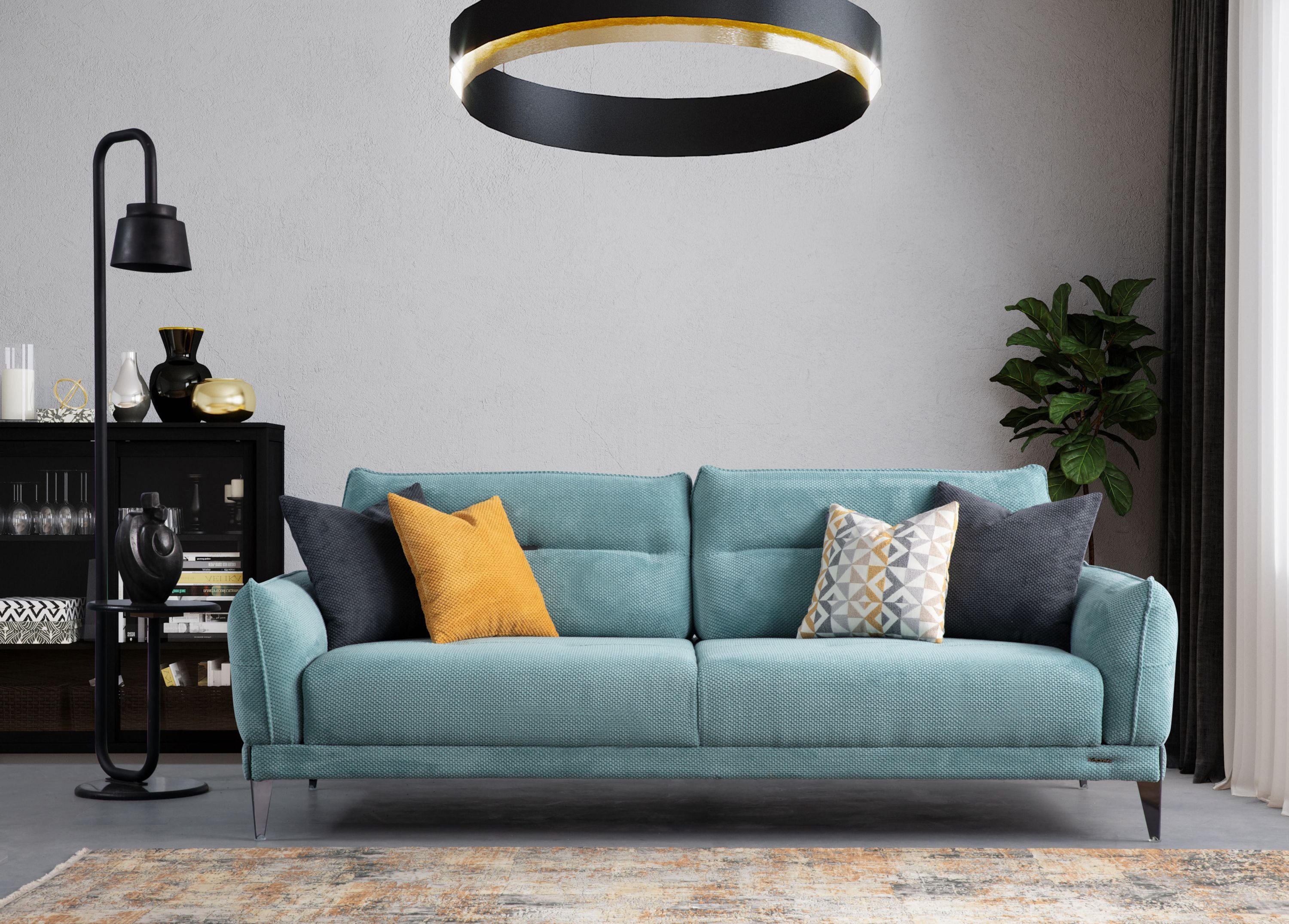Das Leuven Sofa kombiniert modernes Design mit hoher Funktionalität und ist in den stilvollen Farben Anthrazit und Türkis erhältlich. Dieses Sofa ist als 2-Sitzer, 3-Sitzer und 4-Sitzer verfügbar und passt perfekt in moderne Wohnräume. Der hochwertige Stoffbezug in Anthrazit und Türkis verleiht dem Sofa eine elegante Optik und sorgt für ein angenehmes Sitzgefühl. Die robusten Metallfüße bieten Stabilität und eine lange Lebensdauer. Die verstellbare Rückenlehne ermöglicht es Ihnen, die perfekte Sitzposition zu finden und zusätzlichen Komfort zu genießen. Weiche, abnehmbare Kissen erhöhen den Komfort und erleichtern die Reinigung. Das minimalistische Design zeichnet sich durch klare Linien und eine schlichte Eleganz aus, die jedes Wohnzimmer aufwertet. Der 2-Sitzer misst 173 cm in der Breite, 100 cm in der Tiefe und 85 cm in der Höhe, der 3-Sitzer misst 223 cm in der Breite, 100 cm in der Tiefe und 85 cm in der Höhe, und der 4-Sitzer misst 258 cm in der Breite, 100 cm in der Tiefe und 85 cm in der Höhe. Das Leuven Sofa fügt sich nahtlos in jede Einrichtung ein und bietet vielseitige Einsatzmöglichkeiten, sei es im Wohnzimmer oder im Gästezimmer.