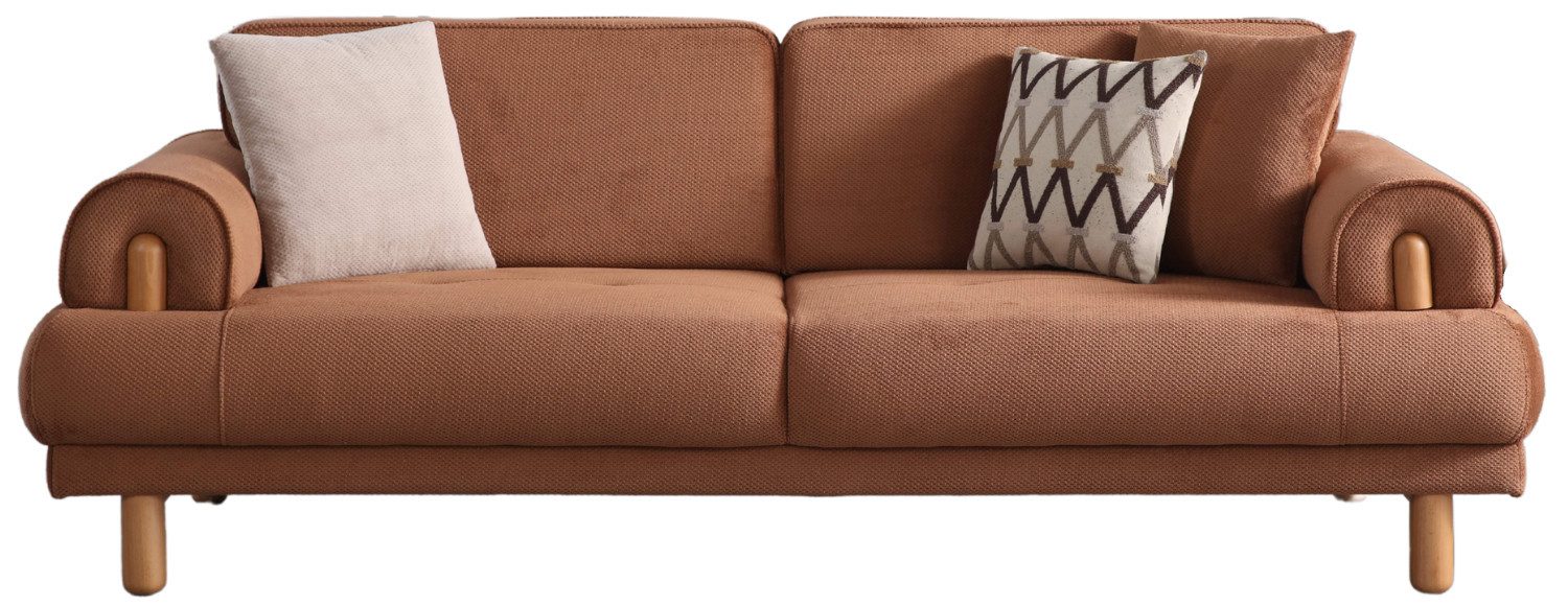 Besonders markant sind die sanft abgerundeten Armlehnen und die sichtbaren Holzfüße, die dem Sofa einen charaktervollen Auftritt verleihen. Die großzügige Sitzfläche mit angenehm fester Polsterung sorgt für langanhaltenden Sitzkomfort. Ob als stilvolles Einzelstück oder in Kombination mit dem passenden 2-Sitzer – Selva bringt wohnliche Eleganz in jeden Raum.