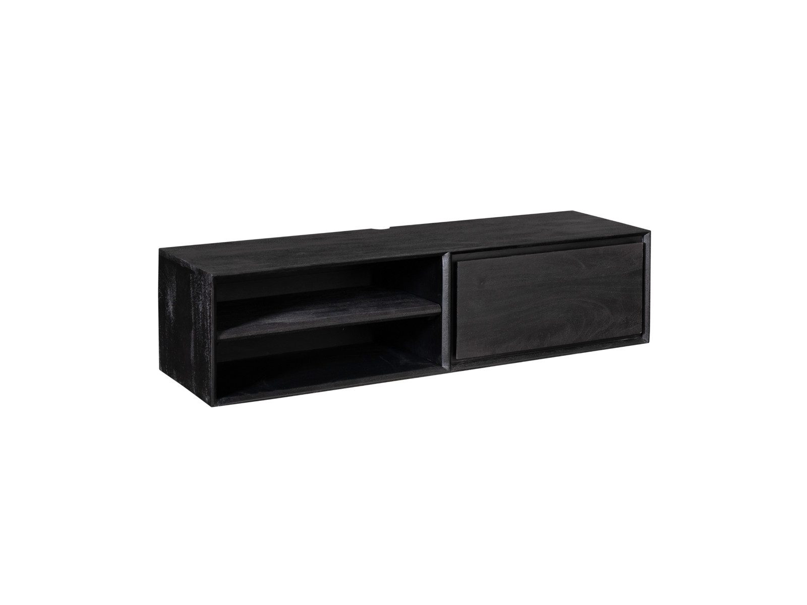 Setzen Sie auf moderne Funktionalität und eine markante Optik in Ihrem Wohnzimmer mit dem Villa-Möbel TV-Board Amoria. Dieses Modell ist die perfekte Symbiose aus praktischem Nutzen und minimalistischem Design. Gefertigt aus robustem Mangoholz, besticht das Möbelstück durch sein tiefes, schwarzes Finish. Die dunkle Farbgebung verleiht dem Raum eine edle Note und lässt sich hervorragend mit verschiedenen Einrichtungsstilen kombinieren, vom Industrial-Style bis hin zum modernen Monochrom-Look.