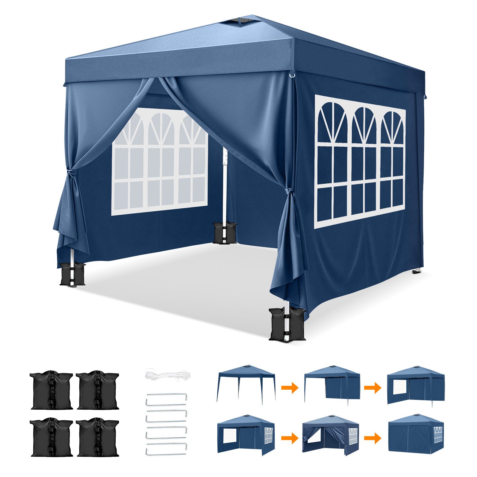 Mit einem widerstandsfähigen, festen Überdachungsteil und praktischer Belüftungsöffnungen ist der Pavillon wirklich das Ultimatum an Praktikabilität und Bequemlichkeit. Er kommt mit einer Tragetasche, sodass Sie das praktische Zelt als schnelles Lösung für Sonnenschutz einfach überallhin mitnehmen können. Die Oberseite des Überdachungsteils hat auch eine silberne Beschichtung, die UV-beständig und wasserdicht ist. Der dickere und widerstandsfähigere, pulverbeschichtete Stahlrahmen verfügt über vorgebohrte Löcher, sodass Sie es verankern können, wenn Sie möchten.
