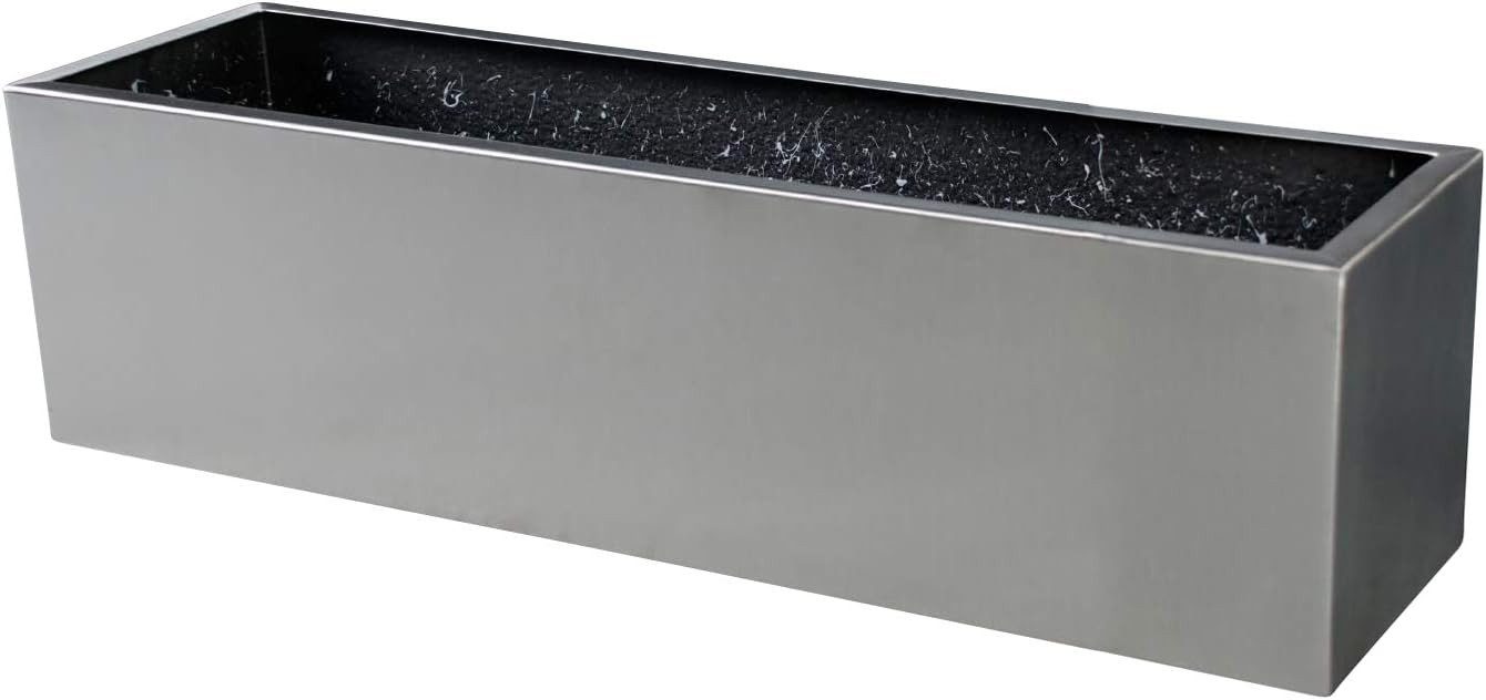 Eleganter Blumenkasten Balkonkasten aus Edelstahl 60cm gebürstet Mit diesem Blumenkasten aus Edelstahl erhalten Sie einen einmaligen Blickfang für Ihre Wohnung, Fensterbank oder Terrasse. Als Material wurde 1 mm dicker rostfreier V2A Edlestahl gewählt, womit der Pflanzkasten auch wetterfest und frostsicher ist. Mit den Abmaßen 17x17x60cm passt dieser Blumenkasten sowohl auf jede Fensterbank, als auch auf Sideboards, Esstisch, Terrasse oder Hotelrezeption. Sie können auch mehrere Pflanzkästen nebeneinander stellen, da die Seiten plan abschließen. Der Blumenkasten hat einen eleganten oben sauber verschweißten Rand. Kleiner Tipp zur Bepflanzung: Füllen Sie den Boden mit 5-10cm Blähton. Dieser wirkt als Wasserspeicher und lässt ihren Pflanzen auch einige Tage ohne Wasser auskommen. Der Pflanzkasten ist wasserdicht und handgefertigt. Für die Aussenaufstellung können Sie jederzeit ein Loch in den Boden bohren. Wir können für unsere Edelstahlkübel keine 100% Garantie auf dauerhafte Wasserdichtigkeit geben. Daher ist unsere Empfehlung besonders bei Aufstellung im Innenbereich Pflanzeinsätze zu verwenden oder den Kübel von innen mit einer Folie auszuschlagen. Für den Außenbereich empfehlen wir ein paar Löcher in den Boden zu bohren mit einem Metallbohrer. Das Loch bitte mit Metallschutz behandeln, um Rost zu vermeiden.