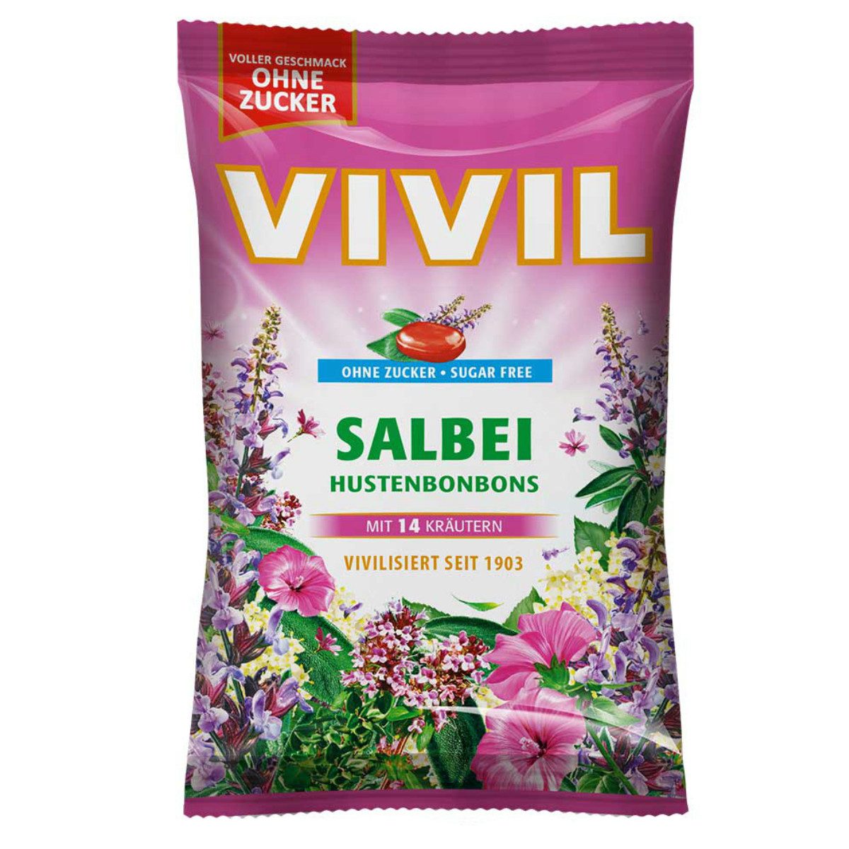 | Bezeichnung des Lebensmittels | Vivil Salbei Hustenbonbons ohne Zucker mild mit 14 Kräutern 120g |