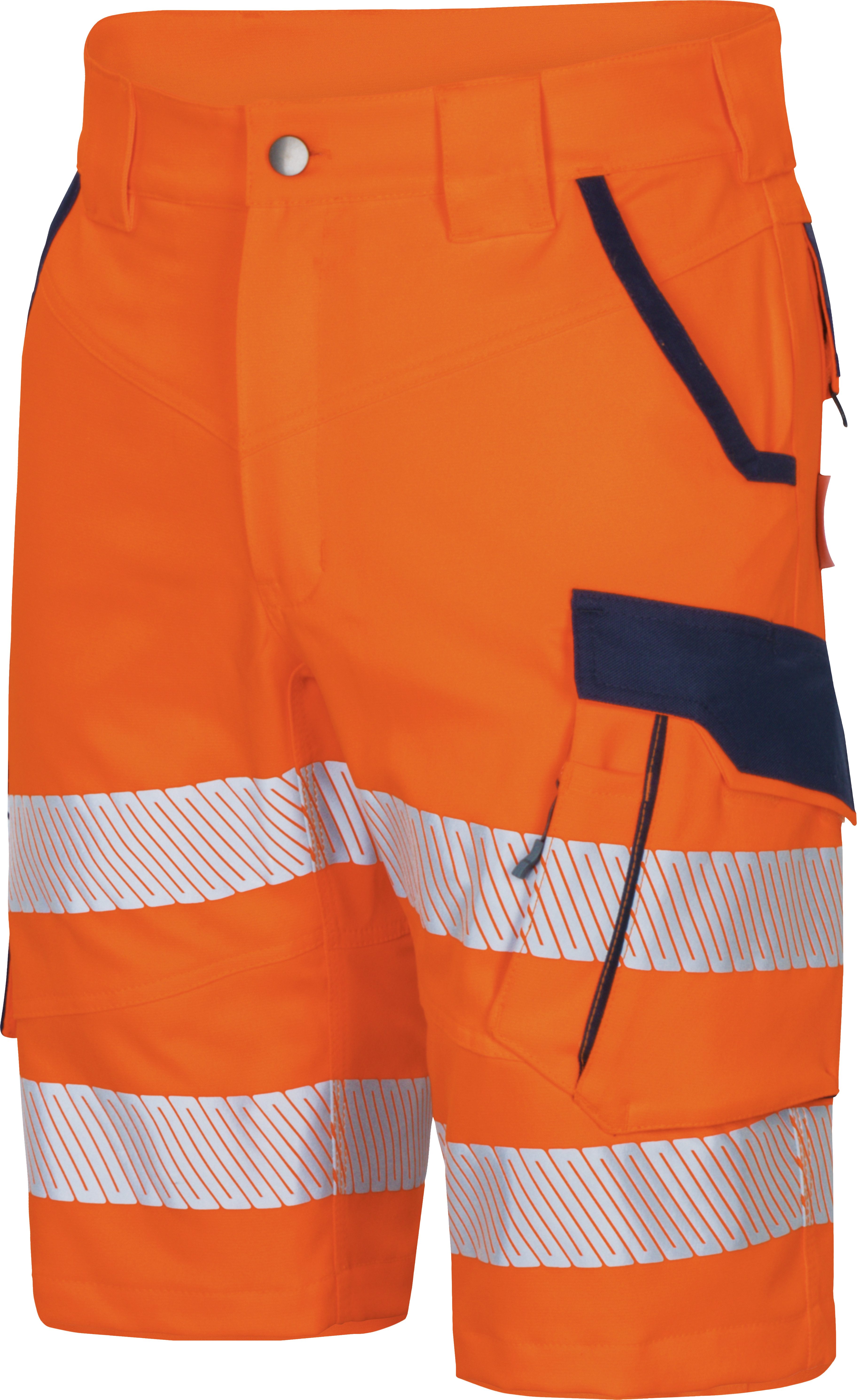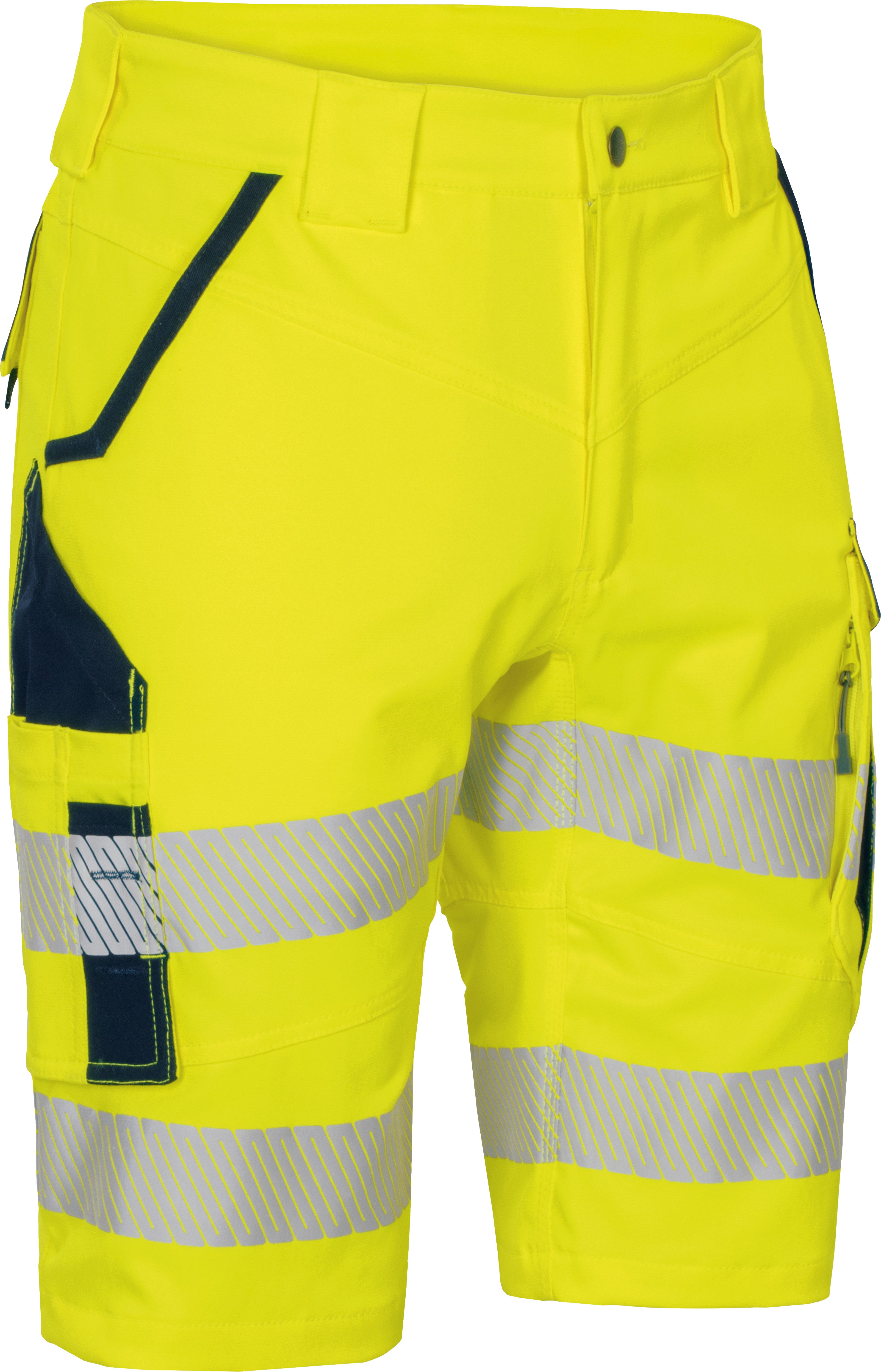 DIN EN ISO 20471:2013 + A1:2016 Klasse 1, DIN EN ISO 13688:2013, mit elastischer Faser EME400 - für beste Formstabilität bei höchster Bewegungsfreiheit, Patten aus 600D/PU Oxford-Material, 3-Nadel-Steppnähte an beanspruchten Stellen erhöhen die Reißfestigkeit, je 2 x 5 cm breite Reflektorstreifen umlaufend an den Hosenbeinen, segmentiert für höhere Dehnbarkeit, Keil im Schrittbereich erleichtert die Bewegungsabläufe und verhindert das Ausreißen der Nähte, 5 breite Gürtelschlaufen, Hosenschlitz mit Qualitätsreißverschluss, Patten mit Klettverschluss, Kontrasteinsätze in marineblau, Taschen: 2 Eingriffstaschen, 2 verstärkte Gesäßtaschen mit Zierstepp, doppelte Maßstabtasche inklusive 4 Stiftfächer am rechten Bein, Cargotasche mit 2 Fächern sowie einer Reißverschluss-Einschubtasche und einer Stifttasche am linken Bein, Material: 60 % Polyester (recycelt), 20 % Elastomultiester, 20 % Baumwolle, 245 g/m²