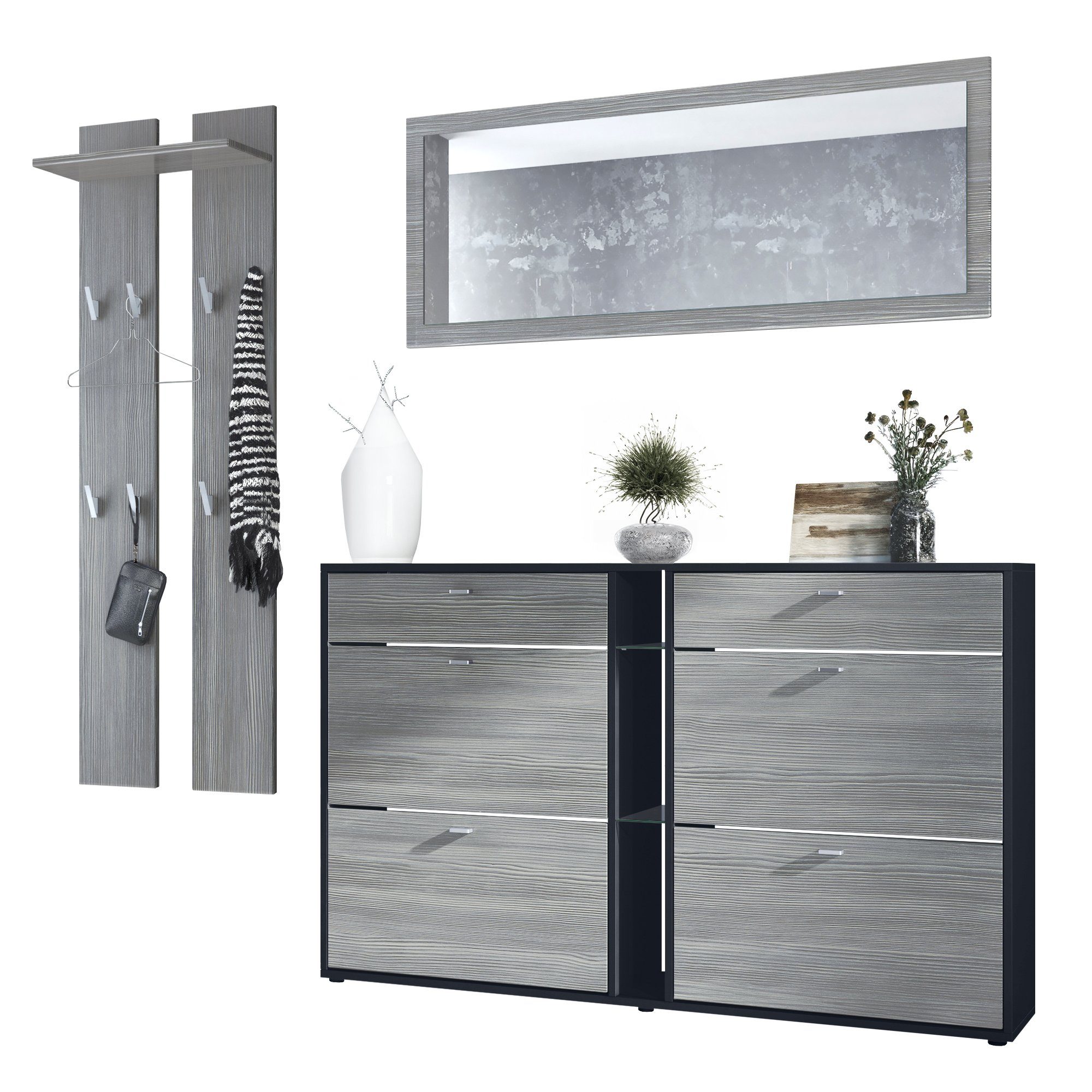 Entdecken Sie mit dem Garderoben-Set Orlando eine zeitgemäße und stilvolle Lösung für Ihren Eingangsbereich. Bestehend aus einem Garderobenpaneel, einem Schuhschrank und einem Wandspiegel, vereint dieses Set Funktionalität und Ästhetik. Das Garderobenpaneel bietet mit seinen Wandpaneelen und acht Garderobenhaken eine clevere Aufbewahrungsmöglichkeit für Jacken und Accessoires. Die abgerundeten Kanten und die dezente Optik integrieren sich harmonisch in jeden Flur.