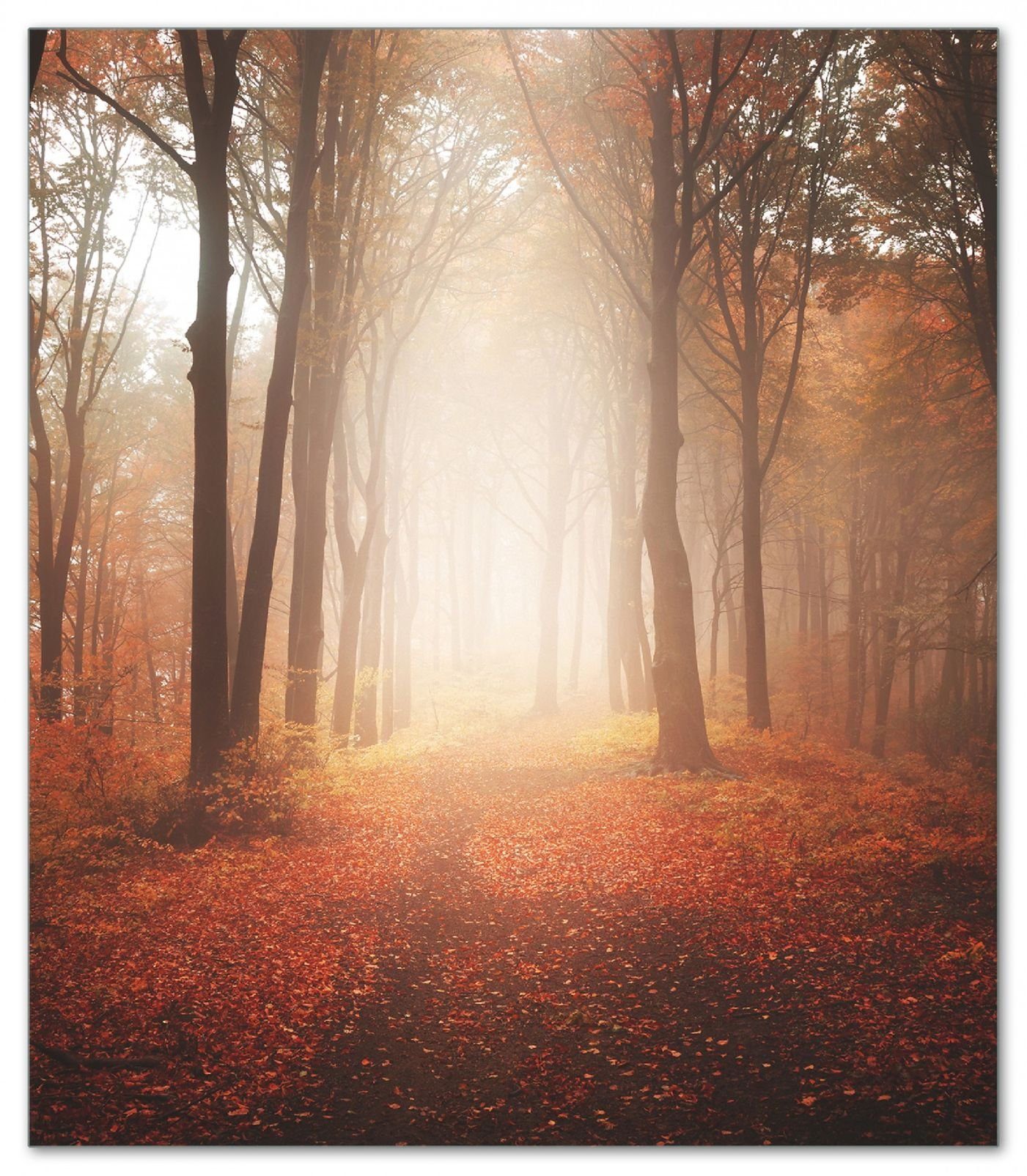 Wallario Herd-Abdeckplatte Herbstwald - Weg zu einer Lichtung im Wald, ESG-Sicherheitsglas, (Glasplatte, 1 tlg., inkl. 5mm Noppen), verschiedene Größen
