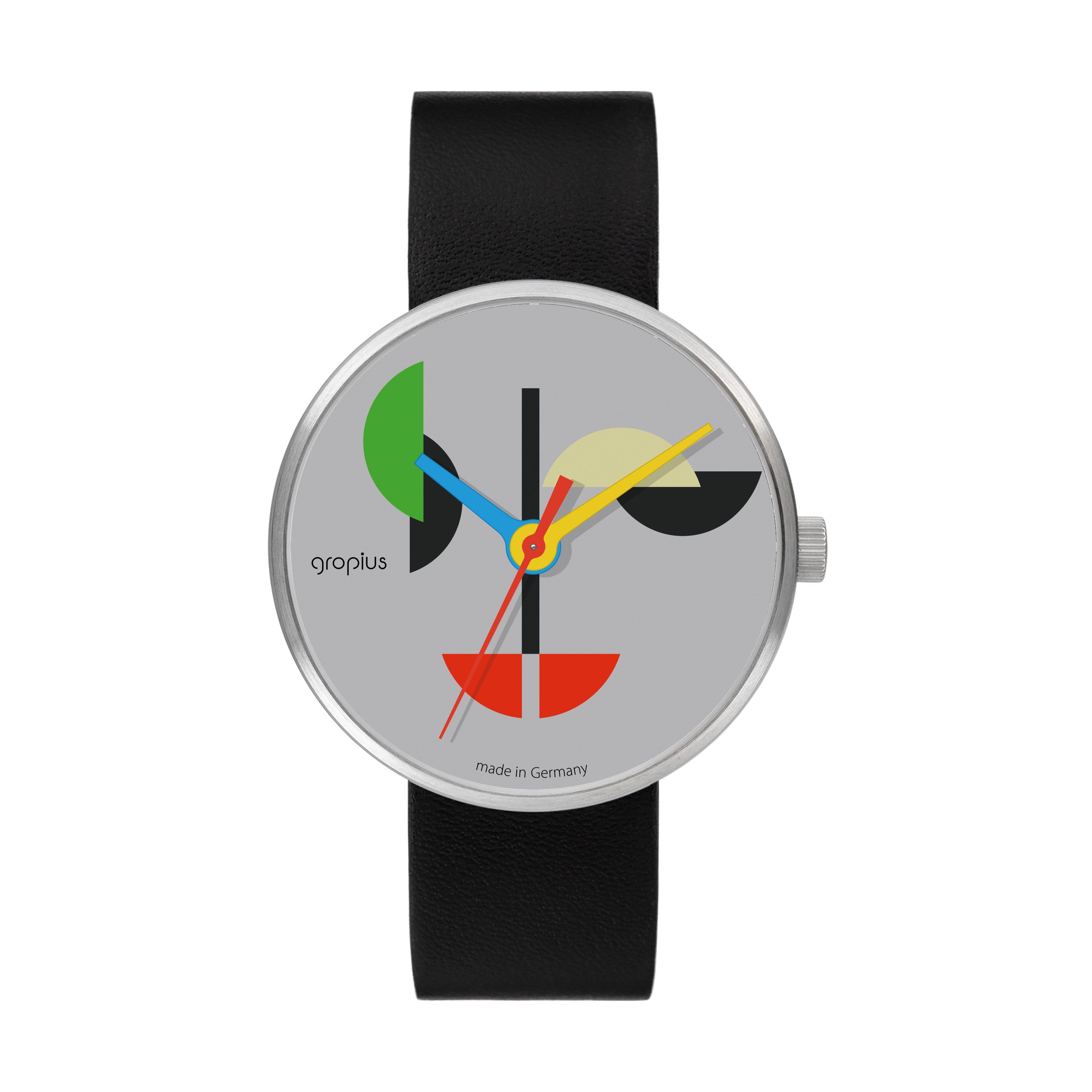 Die Uhren, die im Geiste des Bauhauses entworfen werden, verkörpern dessen Essenz mit ihrem klaren Design und hoher Funktionalität. Diese Zeitmesser sind mehr als bloße Gebrauchsgegenstände; sie sind stilvolle Accessoires, die das Erbe von Gropius und seine Philosophie fortführen. Sie vereinen Ästhetik und Funktionalität in einer Weise, die sowohl Liebhaber des klassischen Bauhaus-Stils als auch moderne Uhrenfreunde anspricht. Das Design der Uhren ahmt nicht den Gestaltungsstil von Gropius nach, sondern interpretiert ihn neu. Bauhaus steht allgemein für zeitloses Design, Einfachheit, vor allem aber auch für das Experimentelle. Das Design der Bauhaus Walter Gropius Uhren macht den neugierigen und spielerischen Aspekt am Bauhaus sichtbar. Poppige Farben, basierend auf den Grundfarben Blau, Gelb und Rot, farbige Zeiger sowie grafische Zifferblätter sind charakteristisch für die Uhrenkollektion.