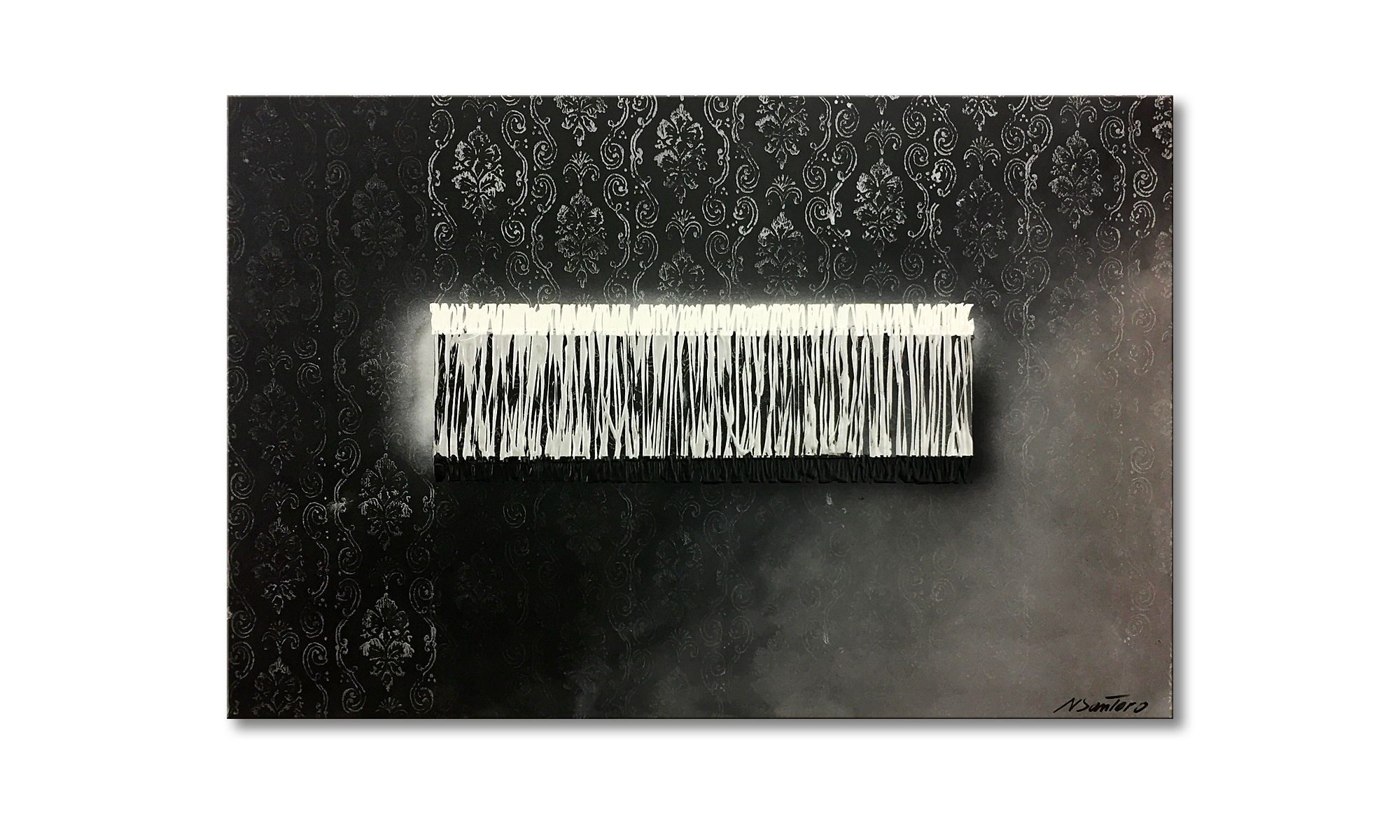 • In diesem Wandbild werden unter anderem die Farben Schwarz und Silber verwendet