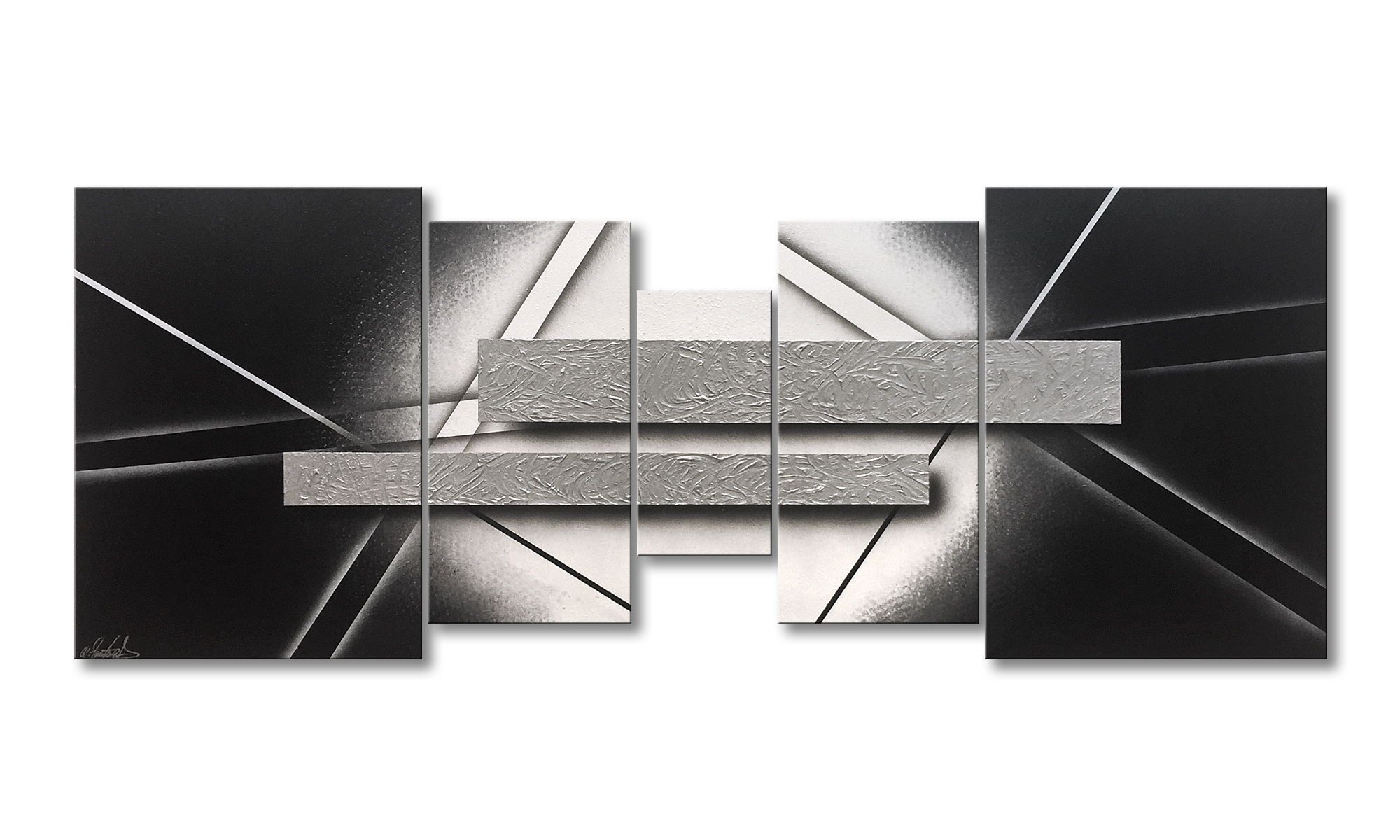 • In diesem Wandbild werden unter anderem die Farben Schwarz, Weiss und Silber verwendet