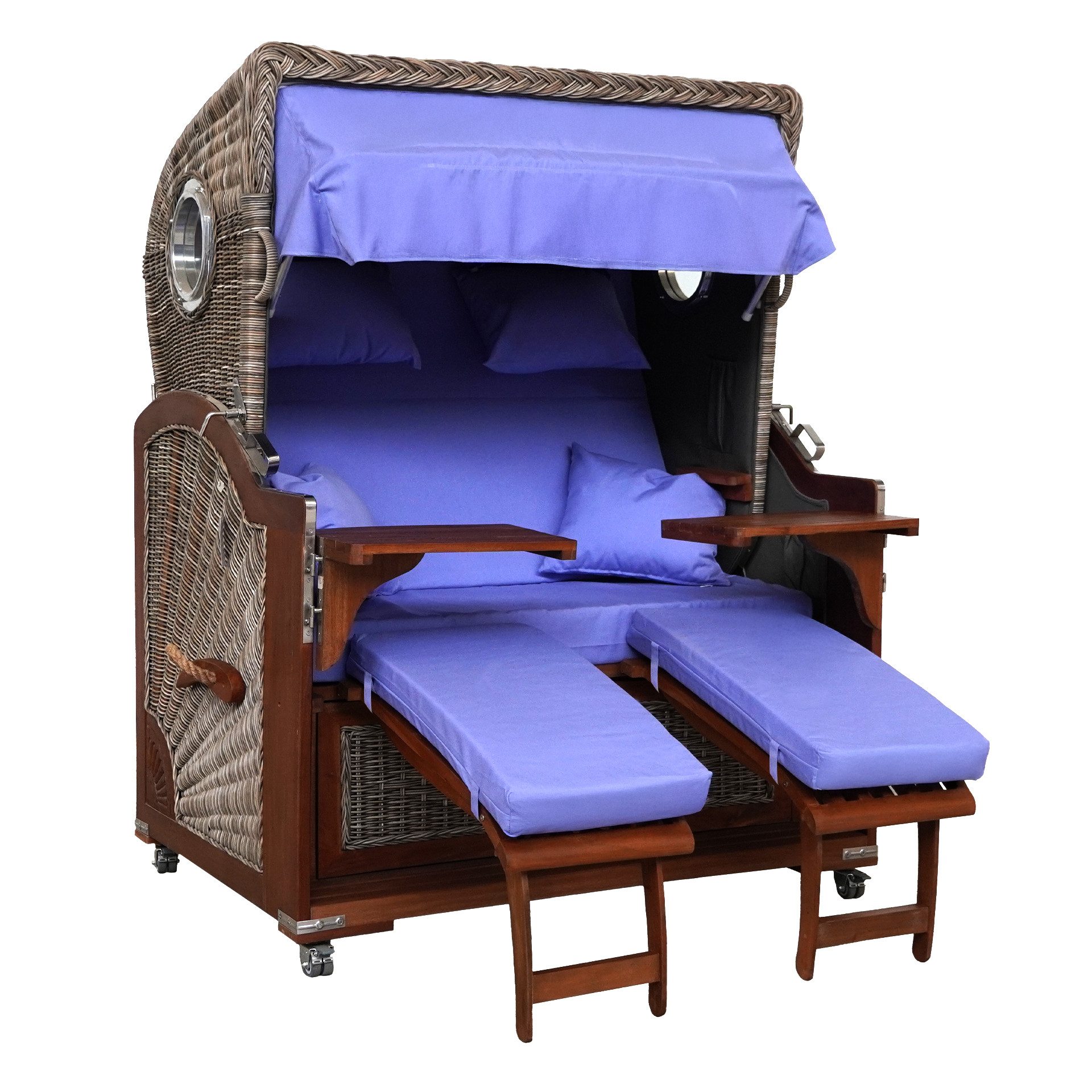 Produktdetails Ostseeform Mit rostfreien Edelstahlbeschlägen Bullaugen aus Sicherheitsglas im Oberkorb Volllieger bis ca. 75° verstellbar Oberkorb in Handarbeit geflochten, besonders stabil Material Oberkorb: PE (Polyethylen), besonders langlebig und robust Schublade unter der Sitzbank Höhenverstellbaren Fußstützen Innentaschen für Zeitung oder Smartphone Kissenbezüge weich, wasserabweisend und UV-resistent