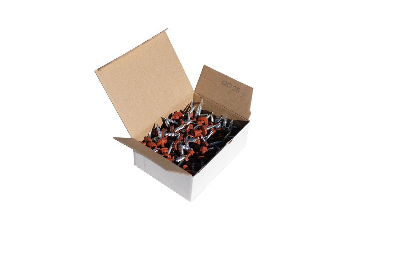 Produktdetails: Einsatzbereich: Außen | Anwendungsbereich: Dach | Farbe: ziegelrot | Material: Metall | Maß: 4,8 x 35 mm | Inhalt: 100 Stück | Zubehör für: Blechdach | Weitere Eigenschaften: selbstschneidend |