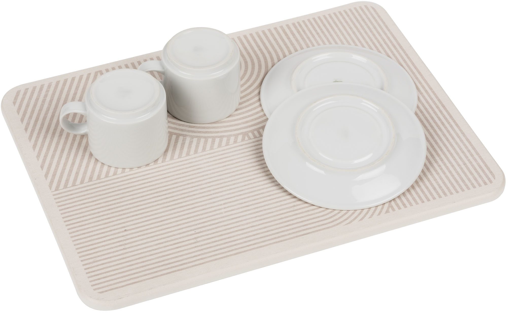 Die Abtropfplatte Damon in trendigem Beige ist ein stilvolles Küchenzubehör, das Funktionalität und Qualität auf eindrucksvolle Weise vereint. Diese schnelltrocknende Abtropfplatte aus hochwertigem Diatomit (Kieselgur) ist die ideale Lösung zum hygienischen Abstellen von Geschirr nach dem Spülen. Dank der hervorragenden wasserabsorbierenden Eigenschaften von Diatomit nimmt die Abtropfplatte das Wasser optimal auf und sorgt damit für ein schnelltrocknendes Abstellen des Geschirrs. Zudem garantiert die Abtropfmatte eine hygienische Nutzung, da sie keine Geruchsbildung zulässt und somit für eine saubere Umgebung sorgt.