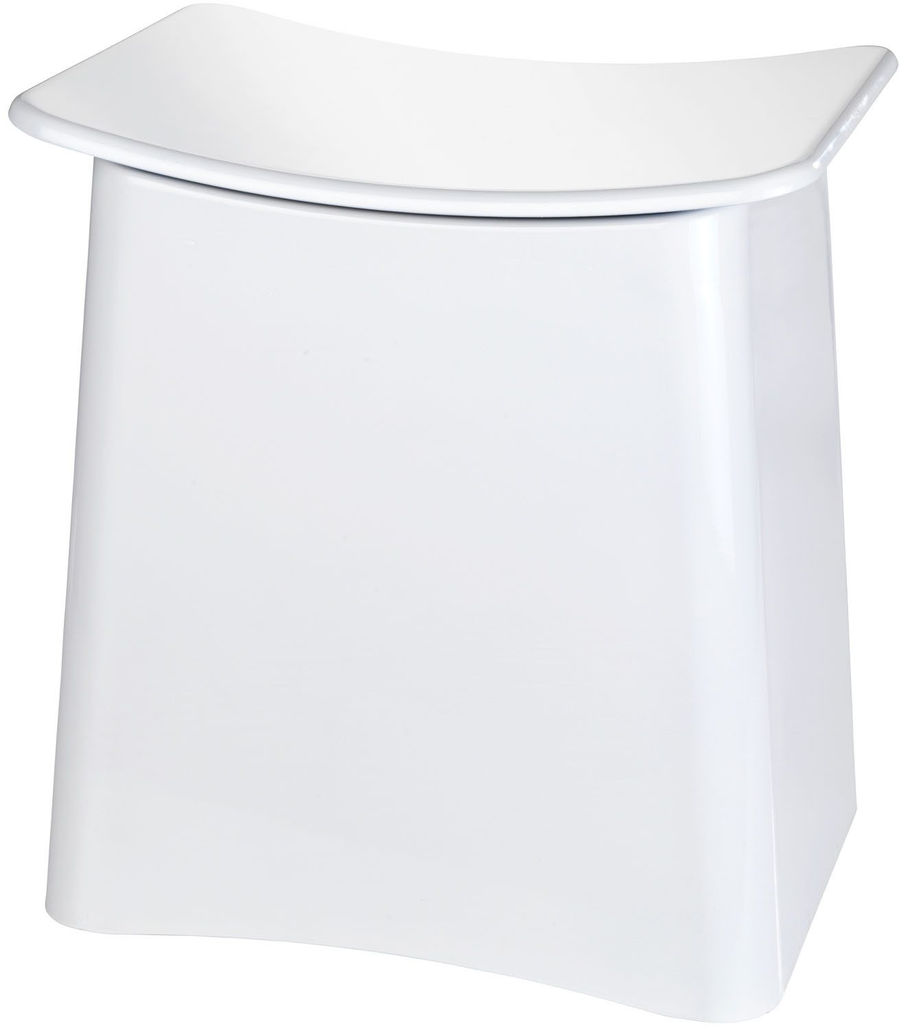 Der trendige Badhocker und Wäschesammler Wing ist aus stabilem ABS-Kunststoff gefertigt. Mit seinem klassischen Weiß und dem modernen, geschwungenen Design wird der Hocker zum Hingucker in jedem Bad.