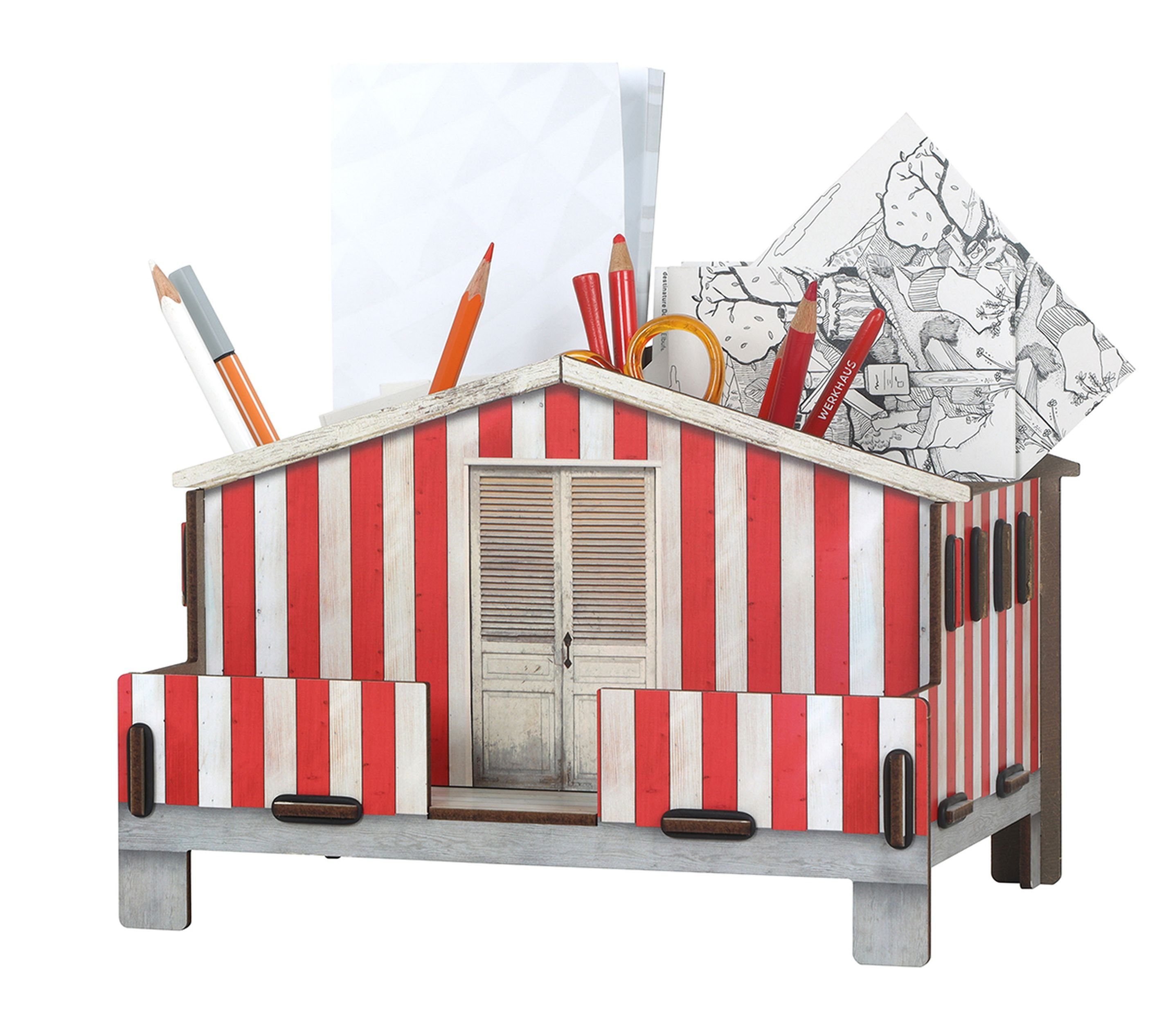 Du machst gerne Urlaub am Meer? Dann hol dir das Gefühl von Strand, Möwengeschrei und salziger Seeluft auch in den Alltag. Mit unserem Organizer in Form eines Strandhauses schaffst du nicht nur Ordnung auf deinem Schreibtisch, sondern bringst auch die Atmosphäre eines sommerlichen Sandstrandes in dein Büro. Der Organizer bietet dir viel Platz für alles, was du an deinem Arbeitsplatz brauchst.