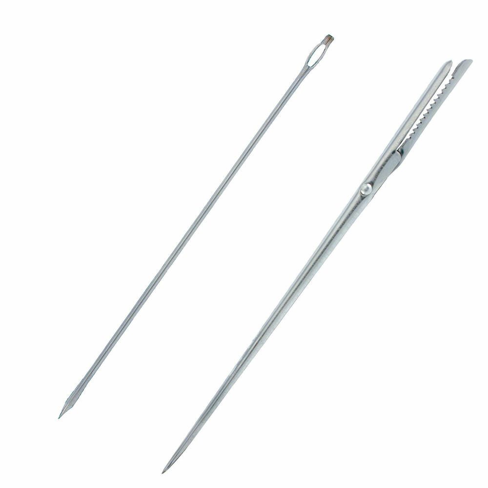 • 1 hochwertige praktische Spicknadel mit gezahntem Endstück zum Spicken von Fleisch- und Geflügelbraten sowie Fisch oder Gemüse, für den Einsatz in der Gastronomie oder Zuhause • Müheloses Durchstechen von Fleisch- und Fischfasern durch scharfe, schmale Spitze, ideal zum Festhalten und Einsetzen von Speck, Gewürzen, Gemüse sowie Mandelstiften • 1 hochwertige klassische Dressiernadel mit sehr scharfer Spitze zum leichten Verschließen von gefüllten Braten sowie Geflügel, unkompliziertes Einfädeln von Bindegarn durch besonders großes Nadelöhr • Langlebig, rostfreier Edelstahl, einfaches Reinigen von Hand, spülmaschinengeeignet • Pflegehinweis: spülmaschinengeeignet