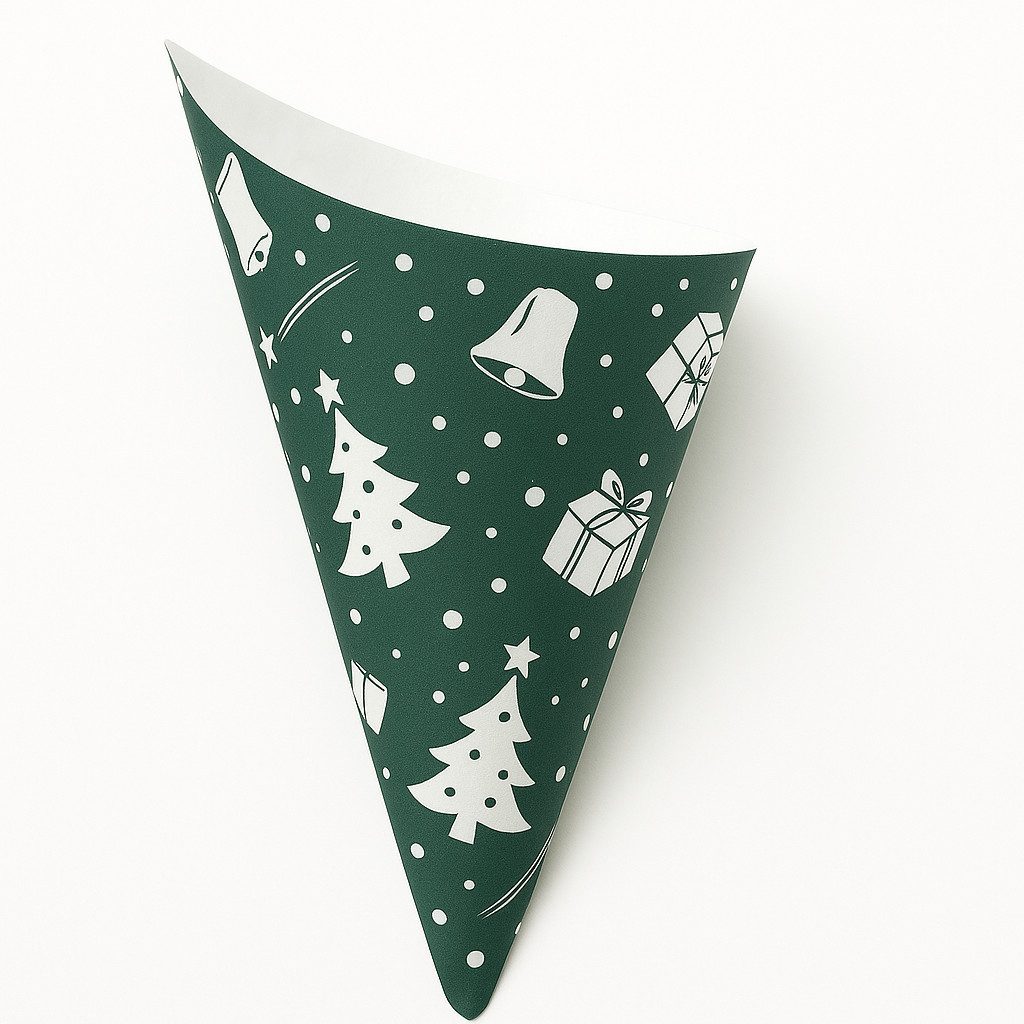 Praktisch, dekorativ und festlich – die grünen Weihnachtstüten im klassischen Spitztüten-Design sind ideal zum Befüllen mit Süßigkeiten, Gebäck, kleinen Geschenken oder Mitbringseln. Mit einem Fassungsvermögen von 125 g oder 250 g und der Lieferung im Set mit 100 Stück auf Band aufgefädelt eignen sie sich perfekt für den privaten wie auch gewerblichen Einsatz. Die stabilen Tüten bestehen aus lebensmittelechtem Papier und sind mit einem festlichen Weihnachtsmotiv in Grün mit weißen Glocken, Geschenken, Tannenbäumen und Schneeflocken bedruckt. Sie lassen sich leicht befüllen, verschließen und dekorativ gestalten – etwa mit Bändern, Aufklebern oder Namensschildern. Ob als Nikolaustüten für Kinder, Wichteltüten für die Adventszeit, Präsentverpackung für Firmenkunden oder Mitgebsel auf Weihnachtsmärkten – die grünen Weihnachtstüten sind vielseitig einsetzbar. Auch in Schulen, Kindergärten, Vereinen oder bei betrieblichen Weihnachtsfeiern sind sie ein praktischer Helfer. Produktdetails: Weihnachts-Spitztüten in Grün mit Motivdruck Fassungsvermögen: 125 g oder 250 g Verpackungseinheit: 100 Stück, praktisch auf Band aufgefädelt Material: stabiles, lebensmittelechtes Papier Ideal für Süßigkeiten, Plätzchen, kleine Geschenke oder Mitbringsel Mit den grünen Weihnachtstüten verpacken Sie Ihre Geschenke schnell, praktisch und stimmungsvoll – perfekt für Kinder, Erwachsene, Firmen und festliche Anlässe.