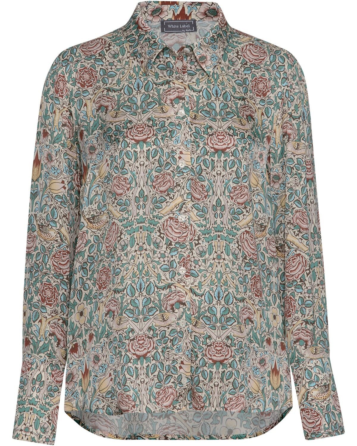 Florale Inspiration Die Hemdbluse von White Label zeichnet sich durch ihre hochwertige Verarbeitung aus reiner Baumwolle aus, die für ein angenehmes Tragegefühl sorgt. Das Allover-Printmuster mit Blumen und Vögeln bringt eine fröhliche und einladende Note in jedes Outfit. Der klassische Hemdblusenkragen und die langen Manschetten verleihen der Bluse eine zeitlose Eleganz, während der hinten gerundete Saum eine moderne Silhouette schafft. Der lockere Schnitt sorgt für eine bequeme Passform und vielseitige Styling-Möglichkeiten. Vielseitige Stiloptionen Diese Hemdbluse lässt sich mühelos in verschiedene Looks integrieren und eignet sich sowohl für entspannte Anlässe als auch für besondere Gelegenheiten. Ob zu Jeans, einem Rock oder unter einem Blazer – sie bietet zahlreiche Möglichkeiten, den persönlichen Stil zu betonen. Eine wunderbare Ergänzung für jede Garderobe, die Wert auf Qualität und ansprechendes Design legt. Oberstoff: 100% Baumwolle