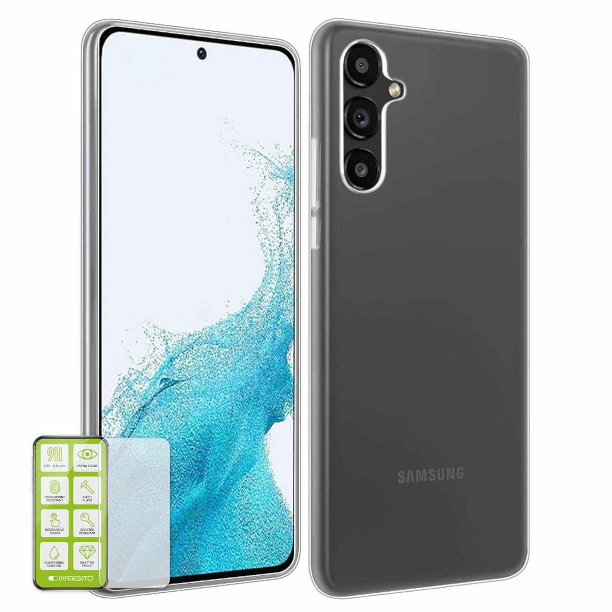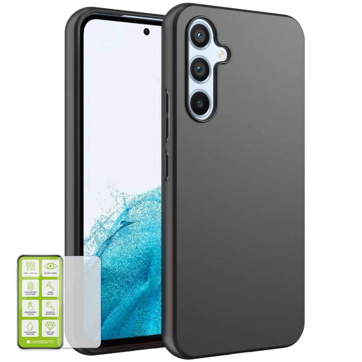AUSWAHL Hochwertiges 0,3 mm ultra dünn TPU Silikoncase für Samsung Galaxy A54 5G und oder Hartglas Folie (0,26 mm extrem dünn, H9 extreme Härte)