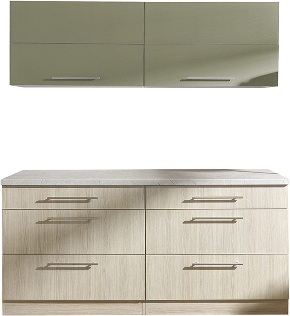 | Farbe Front | Unterschrank: Vicenza Eiche hell, Hängeschrank: Seashell White |