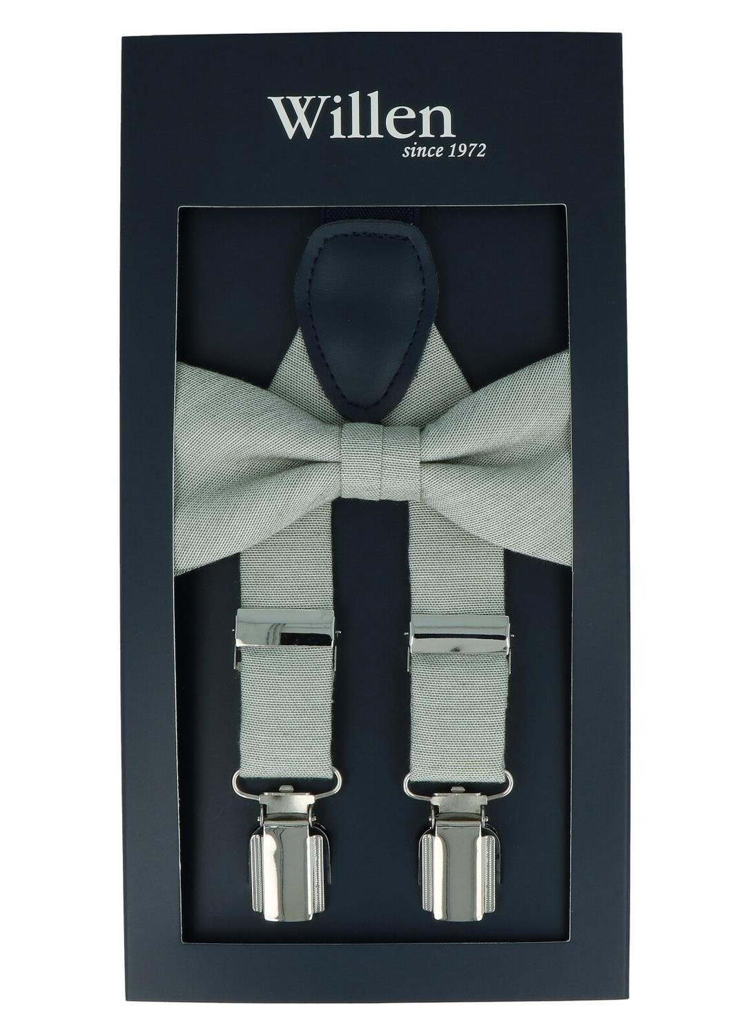 Produktdetails:Dieses Set der Marke Willen erhält seine spezielle Charakteristik durch die besondere Materialwahl aus Polyester und Baumwolle. Das Set besteht aus einem Hosenträger und Schleife im gleichen Design. Diese bilden eine perfekt abgestimmte Kombination der beiden Herrenaccessoires und runden jedes Outfit stilvoll ab. Das Set eignet sich besonders für ein stilbewusstes und modisches Auftreten. Es kann sowohl im Business-Alltag als auch zu Feierlichkeiten jeglicher Art getragen werden. Die klassischen Farben sind für jeden Geschmack das Richtige. Hochwertig verarbeitet mit Ledereinsatz am Rücken verfügen die Hosenträger über den perfekten Tragekomfort. Mit diesem Set erhalten Sie eine starke Kombination der beliebtesten Herrenaccessoires inklusive Verpackung bequem nach Hause geschickt.Materialbeschreibung:* Hosenträger Baumwoll-Polyester-Gemisch gewebt* Breite: 2,5cm; Länge: 120cm* Y-Form mit Ledereinsatz* elastisches Rückenteil für perfekten Sitz* hochwertige Clips, nickelfrei* Schleife Baumwoll-Polyester-Gemisch* modisch schmaler Schnitt* Halsweite individuell regulierbar* „Easy Handling“ als vorgebundene Schleife