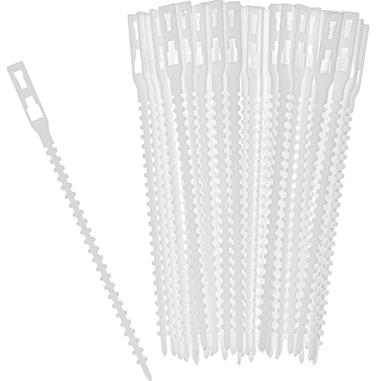 Praktisches Zubehör für die Befestigung von Sichtschutzmatten an Zäunen, Geländern etc. Aus flexiblem Kunststoff. Mehrmals verwendbar, ähnlich wie Kabelbinder. Die Binder können wieder geöffnet werden und sind so wiederverwendbar. Wetterbeständig.