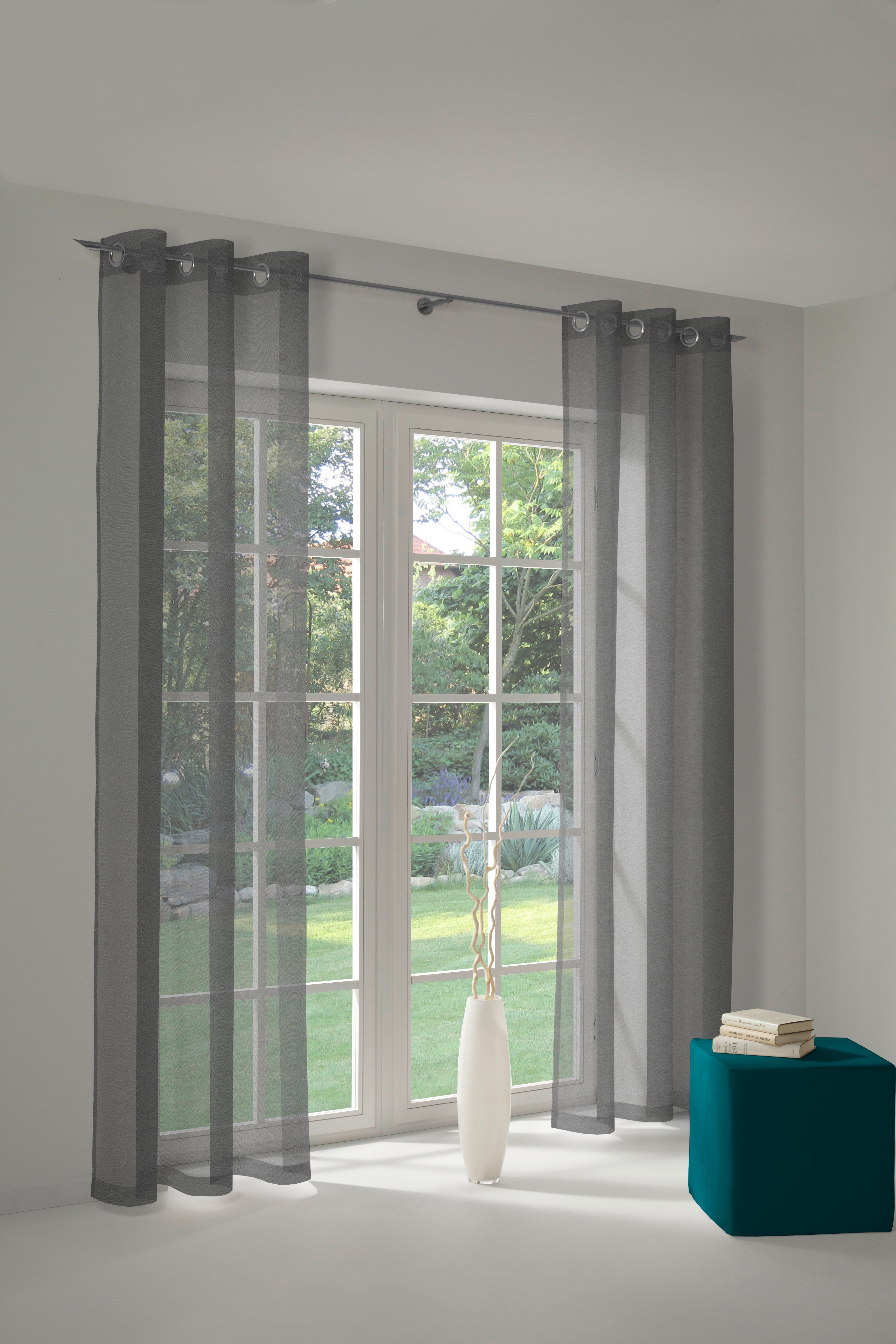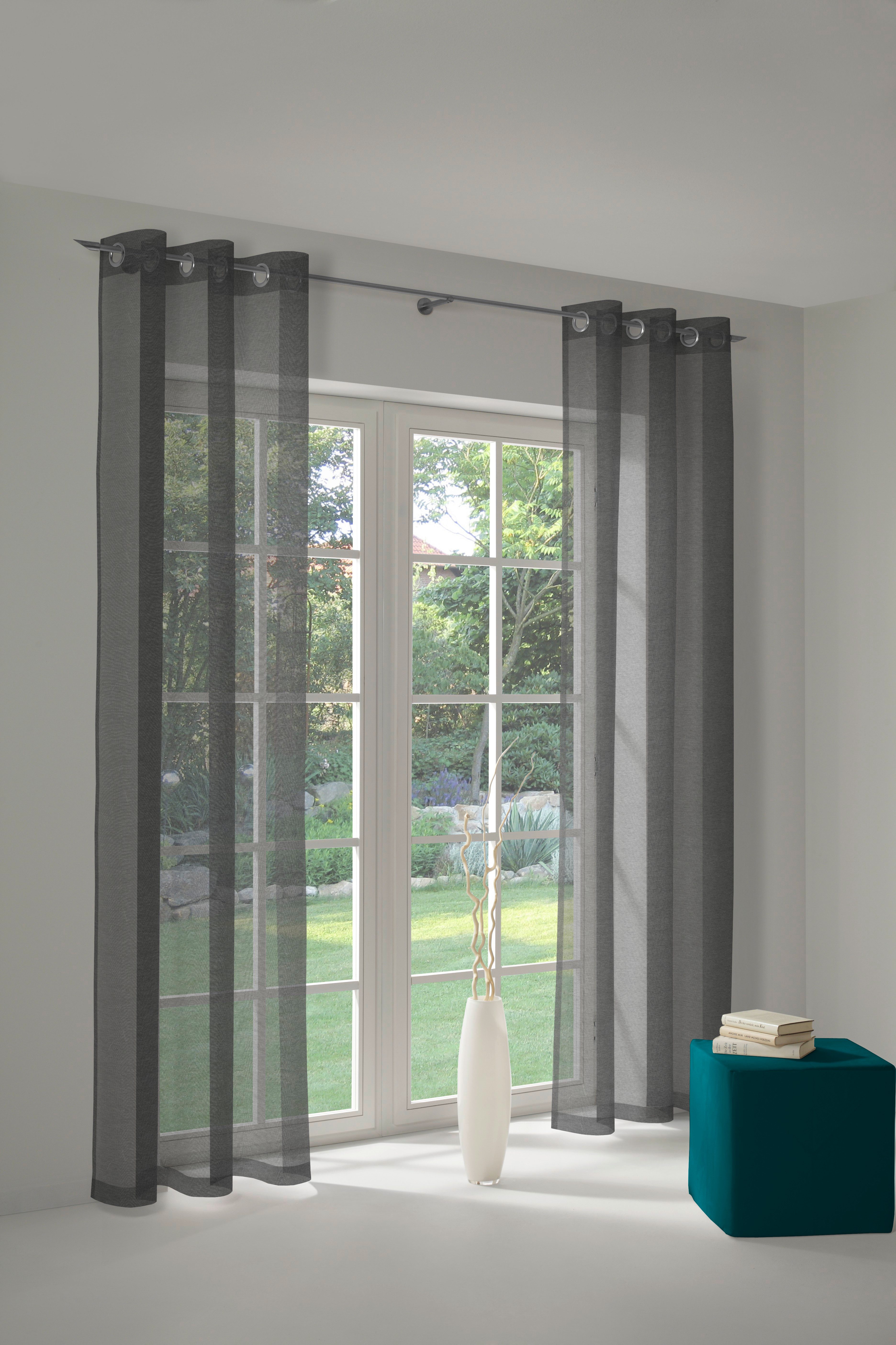 Der Vorhang fällt schön und ist gerade richtig, wenn man nicht blickdicht und auch nicht transparent will!