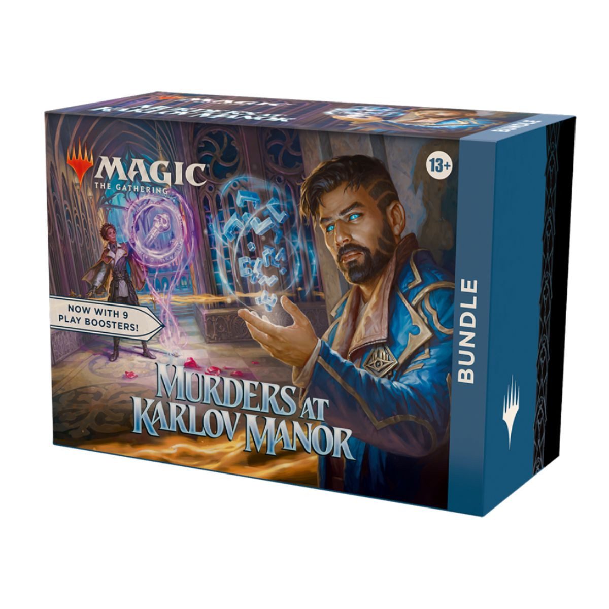 A series of shocking murders involving some of Ravnica’s most powerful citizens has the city on the verge of chaos. Now detectives are on the case . . . and you’re one of them. Return to the fan-favorite plane of Ravnica in Murders at Karlov Manor, Magic’s unique take on the murder mystery genre. This Murders at Karlov Manor Bundle contains 9 Murders at Karlov Manor Play Boosters, plus 1 Traditional Foil card with Bundle-exclusive alternate-art, 15 Traditional Foil Basic Land cards (5 with Full Art), 15 nonfoil Basic Land cards (5 with Full Art), 1 oversized Spindown life counter, 1 card storage box, and 2 reference cards. Each Play Booster contains 14 Magic: The Gathering cards and 1 Token/Ad card, Suspect Punchout card, or Art Card (Art Card found in 35% of packs). Every pack includes a combination of 1–4 cards of rarity Rare or higher and 3–6 Uncommon, 6–9 Common, and 1 Land cards. One card of any rarity is Traditional Foil. The Land card is also Traditional Foil in 20% of boosters, and a special bonus card from Magic’s history can be found in 12% of boosters. Rulebook not included. * NOW WITH 9 PLAY BOOSTERS—Get the best of Draft and Set Boosters, combined into one! Play Boosters are great for Limited play and fun to open, with a possibility of multiple Rares and at least 1 shining foil card in every pack * TRACK THE CLUES. CRACK THE CASE—Play detective as you collect evidence, don disguises, and identify suspects with a box full of boosters and Land cards to build murder mystery-inspired decks * FULL-ART LANDS & SPECIAL ALTERNATE-ART CARD—Every Bundle also contains 1 foil promo card featuring Bundle-exclusive alternate art, and 10 of the 30 included Basic Land cards feature gorgeous Full Art * EXCLUSIVE ACCESSORIES—In addition to cards from the set, each Bundle comes with exclusive accessories, including a special die to track your life total and a sturdy box to store everything in * PLAY A GAME THAT FUSES ART, STORIES & STRATEGY—Magic: The Gathering is a collectible card game that weaves deep strategy with art and mechanics that explore the themes of a particular world and story—whether you want to play a casual game with friends, collect cool cards, or get competitive, Magic welcomes you to The Gathering * CONTENTS—9 Murders at Karlov Manor MTG Play Boosters, 1 Traditional Foil alt-art card, 30 Land cards (15 foil, 15 nonfoil), 1 Spindown life counter, 1 card storage box, and 2 reference cards