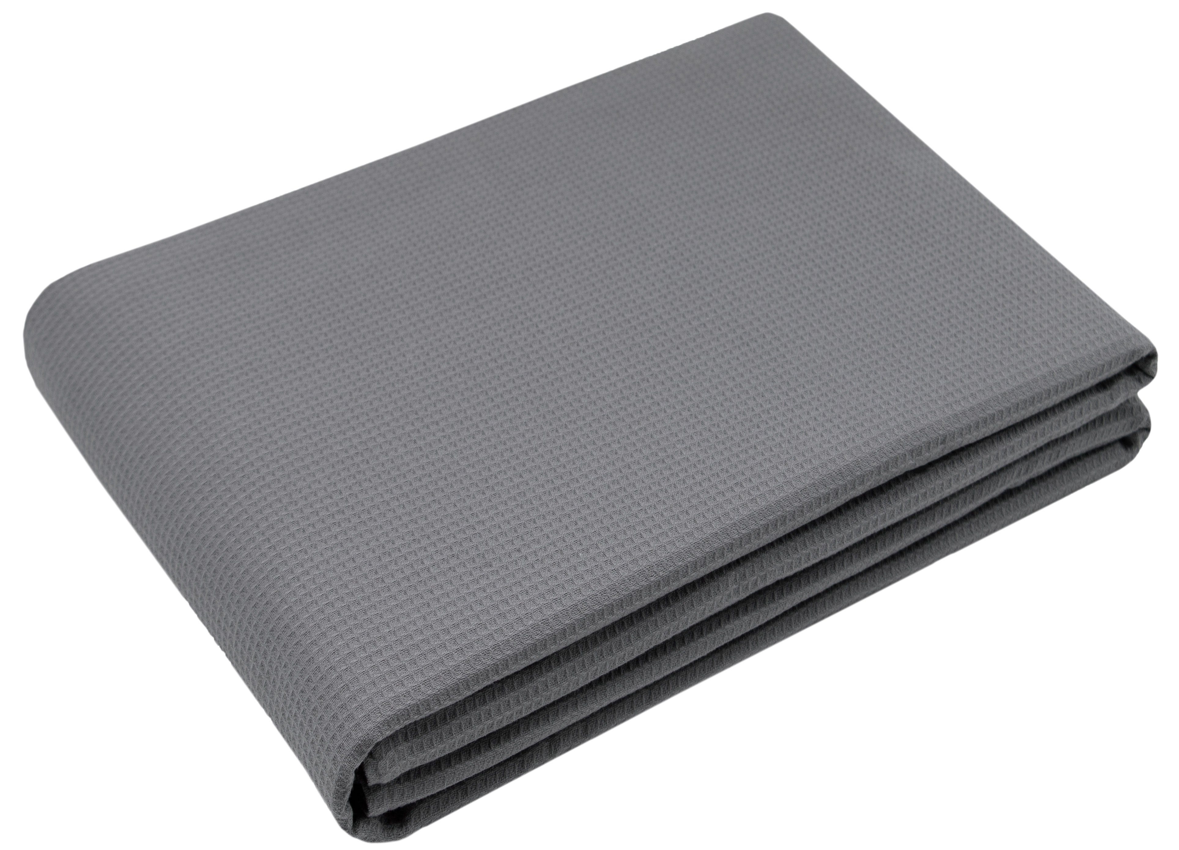Vielseitig einsetzbar als leichte Sofadecke, dekorative Tagesdecke, praktische Überwurfdecke und als Schlafdecke. Nehmen Sie die Decke mit auf Reisen oder zu einem Picknick draußen. Die graue Couchdecke besteht aus 100% Baumwolle und wiegt 220 g/qm und ist dadurch besonders atmungsaktiv und eignet sich sehr gut für Menschen mit empfindlicher Haut.