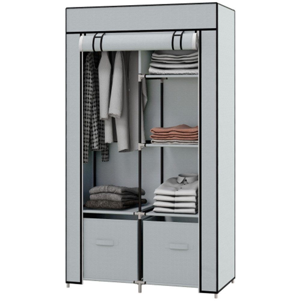 Sagen Sie dem Chaos Adieu: Dieser tragbare Kleiderschrank verfügt über eine Kleiderstange zum knitterfreien Aufhängen von Mänteln und Kleidern, zwei verschiebbare Stoffschubladen mit Griffen und fünf Aufbewahrungsfächer für gefaltete Kleidung, Taschen und Bettwäsche