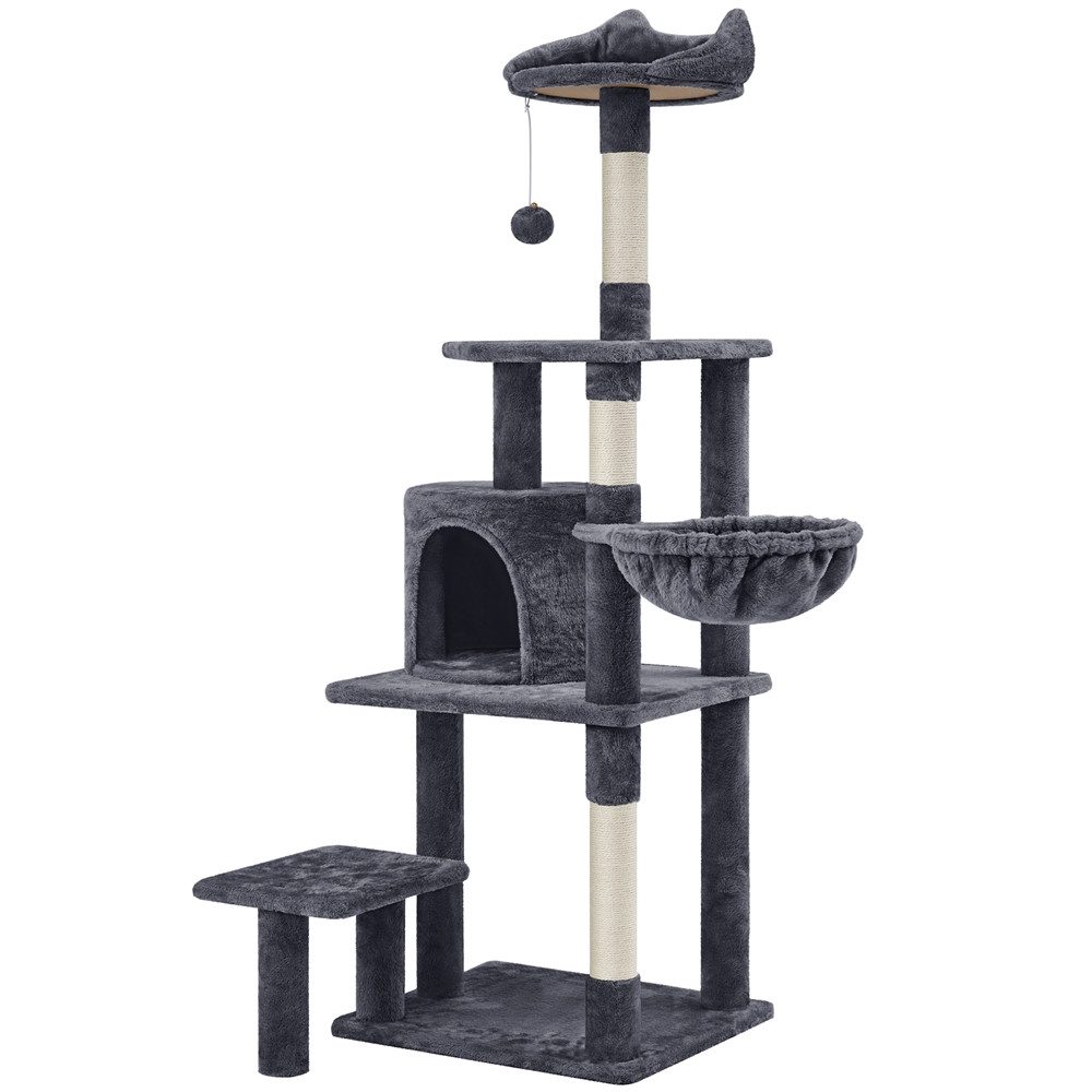 Bauen Sie einen Spielplatz für Ihre dynamischen Freunde! Dieser Kratzbaum besteht aus die Aussichtsplattform, Katzenhöhle, Liegemulde, Sisalstämme und dem hängenden Plüschball. Ihre Kätzchen können darauf mit dem Ball spielen, auf der Aussichtsplattform beobachten, in der Katzenhöhle verstecken und sich in der Liegemulde ausruhen. Sie lieben es, sich an dem weichen Stoff zu reiben und zu schnurren. Die Sisalstämme in verschiedenen Höhen tragen dazu bei, ein positives Kratzverhalten zu fördern und dass Ihre Katzen die Krallen von Ihren Möbeln fernhalten.