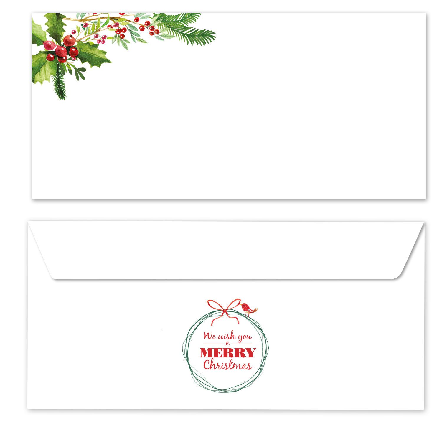 Dieser Umschlag ist nicht nur funktional, sondern auch ein echter Blickfang, der die Vorfreude auf das Fest noch verstärkt. Die Umschläge sind im Format DIN Lang (110 x 220 mm) – ideal für Ihre Weihnachtskarten und Briefe.