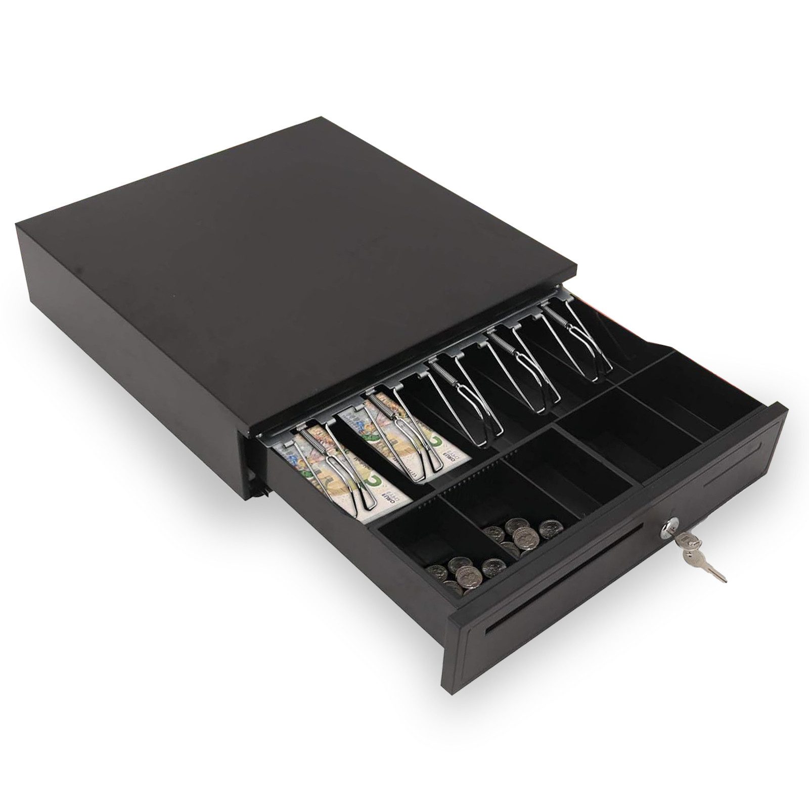 Praktisches Design in der Schublade, herausnehmbarer Geldhalter mit Münzfach und Kunststoff-Quittungsfach.