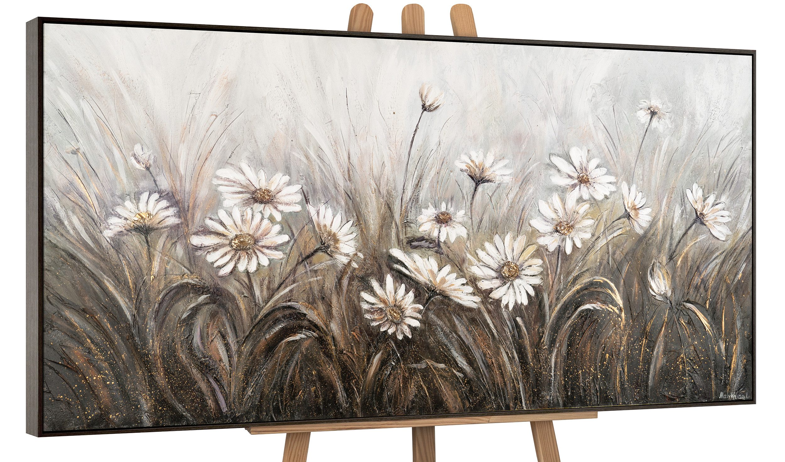 Acryl Gemälde „Gänselblümchen“ in einem modernen Stil, 100% handgemalt. Materialien: Acryl, Leinwand, Keilrahmen aus Naturholz.