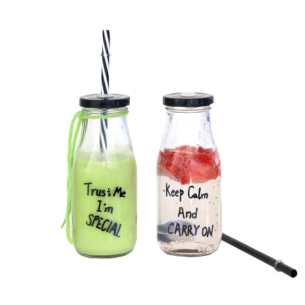 440s Glas Trinkflaschen 2er Set, Keep Calm And CARRY ON und Trust Me I'M SPECIAL, mit Verschluß und Trinkhalm, je ca. 0,3 L Das sind doch heitere Aussichten - die Sprüche Keep Calm And CARRY ON und Trust Me I'M SPECIAL zieren in schwarzen Lettern die praktischen und stylischen Glas-Trinkflaschen. Lassen Sie sich von den witzigen Message-Bottles inspirieren, verschenken Sie ein selbstgemaches Lieblingsgetränk darin oder dekorieren Sie damit liebevoll ein Regalbrett in Ihrer Küche! Die vier Trinkgefäße aus Klarglas mit ihren kessen Aufschriften werden mit Trinkhalmen und einem stabilen, wiederverschließbaren Metalldeckel geliefert und können somit bei vielen Einsätzen, nicht nur im Freien, Sommerlaune verbreiten. Die zwei Trinkgefäße aus Klarglas mit ihren kessen Aufschriften werden mit Trinkhalmen und einem stabilen, wiederverschließbaren Metalldeckel geliefert. Produktdetails 440s Glas Trinkflaschen 2er Set, Keep Calm And CARRY ON und Trust Me I'M SPECIAL, mit Verschluß und Trinkhalm, je ca. 0,3 L: Im Lieferumfang: 2 Flaschen mit 2 verschiedenen Aufschriften, 2 Deckel, 2 Trinkhalme Material Flasche: Glas Material Schraubverschluss: Metall, Blech mit Dichtungs-Gummi-Pfropfen Material Trinkhalm: Kunststoff Maße Flasche: ca. 15 cm H x 6 cm D Farbe: Glas in klar transparent, Aufschrift in schwarz, 1 Trinkhalm in schwarz-weiß geringelt, 1 Trinkhalm in schwarz 2 verschiedene Aufschriften: Keep Calm And CARRY ON, Trust Me I'M SPECIAL Fassungsvermögen je Trinkflasche: ca. 0,3 Liter Dieses Angebot gilt für ein 2er Set 440s Glas-Trinkflaschen mit zweifach sortiertem Aufdruck (siehe oben) Verschluß und 2 Trinkhalmen, mit einem Fassungsvermögen von jeweils ca. 300 ml, Artikel Nummer KJ-271018-Keep-Trust, ohne Dekoration oder weiteres Zubehör.