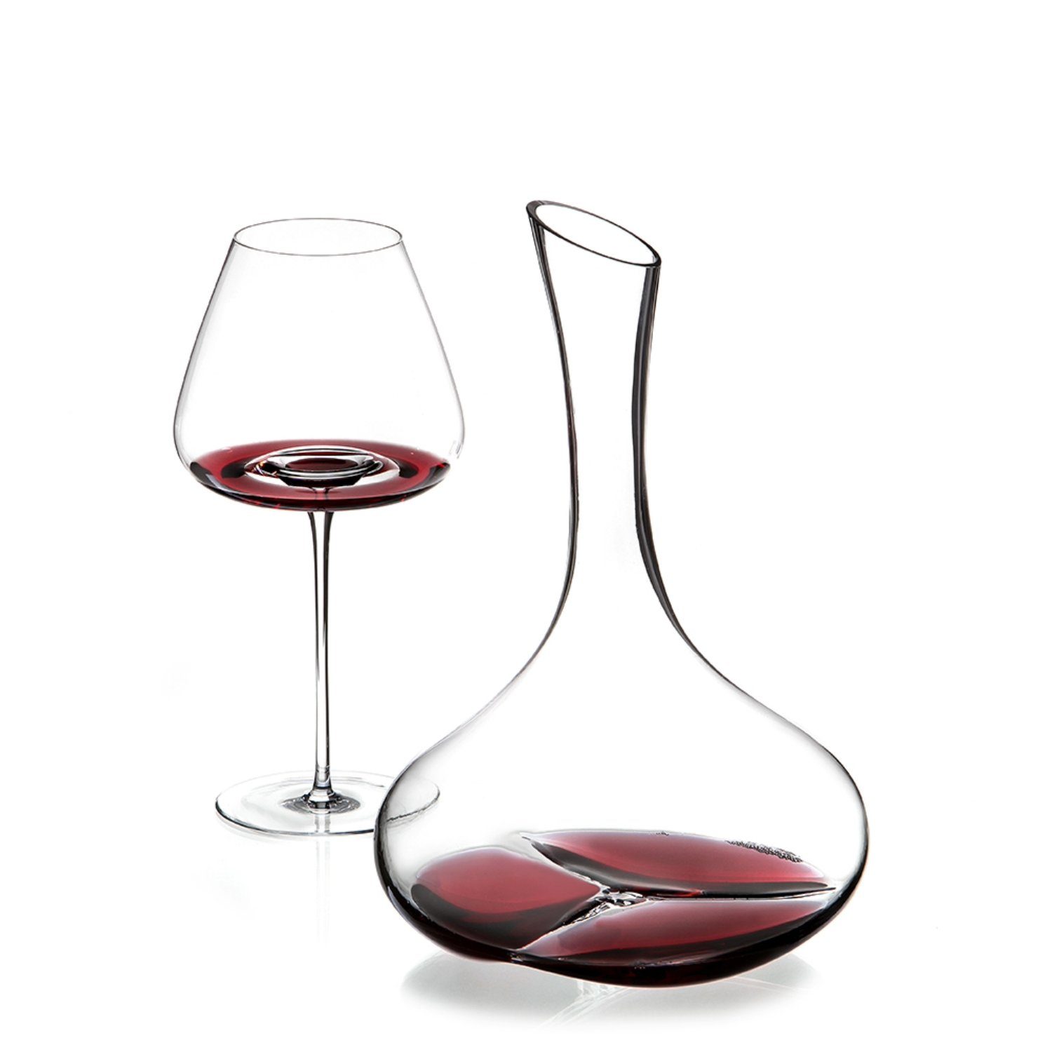Die innovative Formgebung des "Pebble" Dekanters trägt wesentlich zur Funktionalität bei. Der Hals ist so gestaltet, dass der Wein beim Eingießen die komplette Innenfläche des Dekanters berührt, was die Oberfläche des Weines maximiert und für eine effektive Belüftung sorgt. Zusätzlich sorgen drei im Boden eingelassene Mulden dafür, dass der Wein sanft aufgewirbelt wird, was die Aromen- und Geschmacksentfaltung des Weines unterstützt. Ein behutsames Schwenken des gefüllten Dekanters intensiviert diesen Effekt und macht das Weintrinken zu einem besonderen Erlebnis.