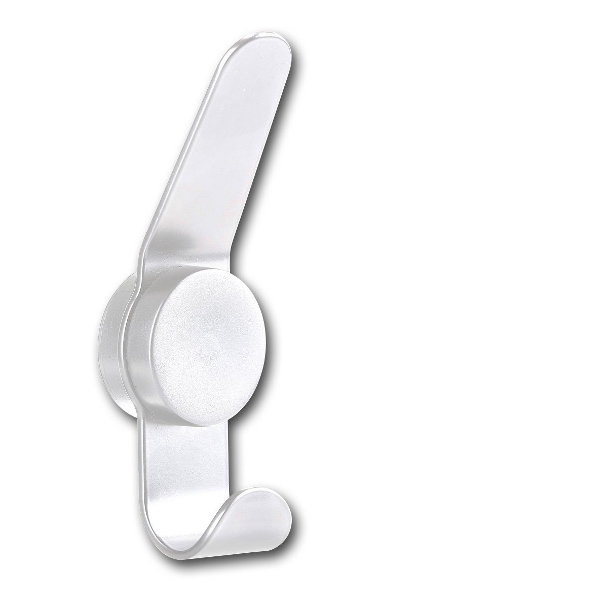 ZONE Wandhaken PUCK HOOK DOUBLE, Kunststoff matt, weiss, ca. 18,5 cm H Ein Wandhaken-System mit 2 Hängeplätzen: Oben und unten können an dem trendigen Bad- und Küchen-Accessoire Handtücher, Bademäntel oder Geschirrtücher aufgehängt werden. Die rückseitige Befestigungsplatte kann mithilfe einer einzigartigen Unterdruckfunktion an der glatten Fliese angedockt werden. Produktdetails ZONE Wandhaken PUCK HOOK DOUBLE, Kunststoff matt, weiss, ca. 18,5 cm H: Im Lieferumfang enthalten: Wandhaken mit integrierter Wand-Befestigung Material: Kunststoff Polypropylen, Metall pulverbeschichtet Maße: ca. 5,5 x 18,5 x 4,5 cm (BxHxT) Design: VE2 Tragekraft: bis maximal 5 kg Hinweis: zur Befestigung sind keine Schrauben, Klebstoff oder Werkzeug erforderlich Dieses Angebot gilt für ein Stück ZONE Wandhaken PUCK HOOK DOUBLE, Kunststoff matt, weiss, ca. 18,5 cm H - ZO-371115, OHNE Deko und Zubehör.