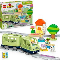 Damit Opas Modelleisenbahn im Keller verschont bleibt, bietet Lego Duplo auch Sets mit Schienen, Zügen und Bahnhöfen an, einige enthalten elektronische Komponenten wie batteriebetriebene Lokomotiven. Ebenfalls ein Spielzeugklassiker: Baustellen-Sets mit Baufahrzeugen, Bauarbeitern und Baustellenzubehör sowie Sets mit Familien- und Freizeitszenen wie Camping, Strand und Parks. Darüber hinaus sind Sets erhältlich, mit denen Kleinkinder spielerisch mit Zahlen und Buchstaben vertraut werden können oder die zum Erkennen und Benennen von Formen und Farben anregen.