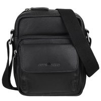 Greenburry Umhängetasche Basic, Schultertasche 18x20cm, kleine Herrentasche, Leder, schwarz