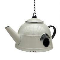 DanDiBo Vogelhaus zum Aufhängen Metall Deko Teekessel wetterfest 521862 Nistkasten, Putzklappe Futterstation für Vögel Shabby Kette Metallkanne
