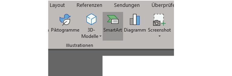 - Klicke im Menüband oben auf Einfügen und in der Gruppe Illustrationen auf SmartArt.