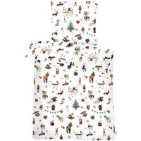 APELT Bettwäsche Hugo, Mako-Satin, 2 teilig, Winterwelt mit exotischen Tieren und Leoprint-Umrandung