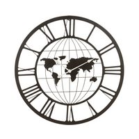 J-line Wanduhr Zeitreise Metall Wanduhr mit Römischen Ziffern und Weltkarte