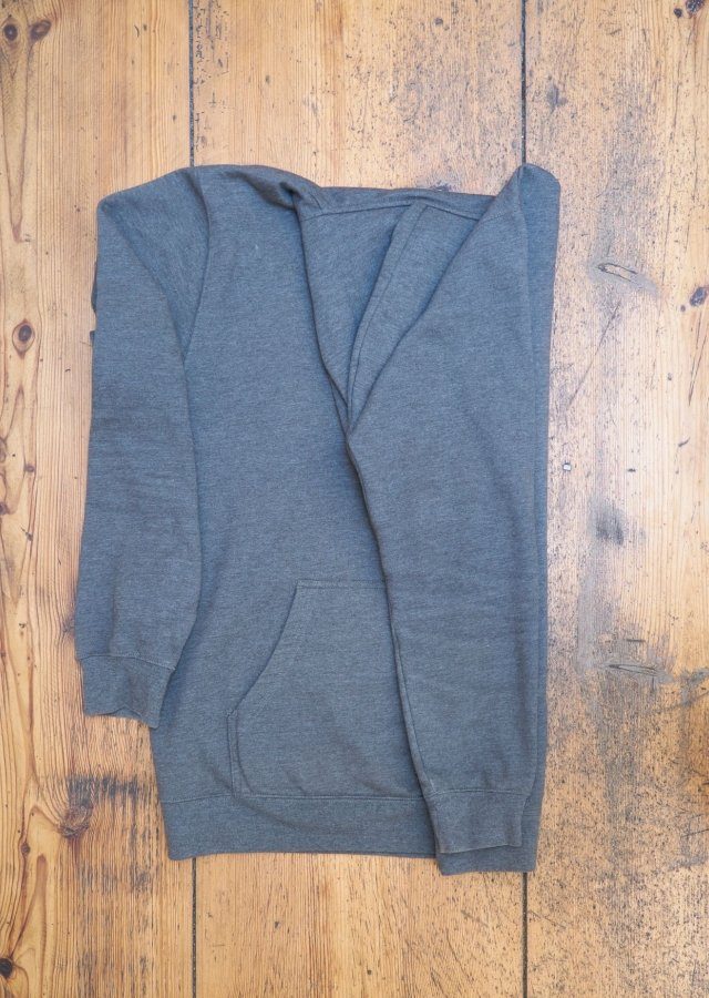 Schritt 7: Klappe den Pullover ein weiteres Mal zusammen.